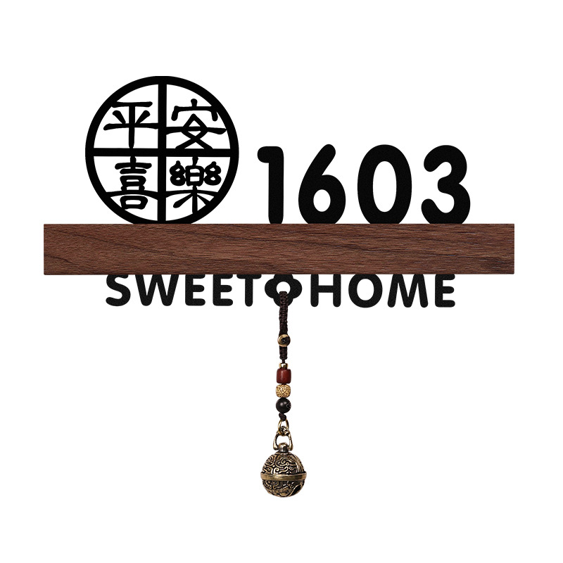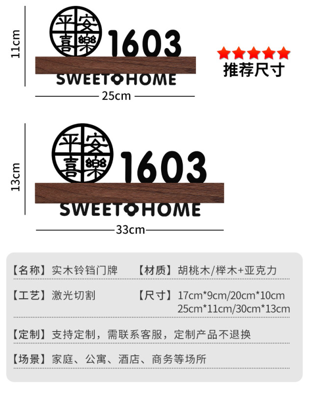 - 規格型號:胡桃木+平安喜樂+歡迎回家黑【帶燈/送鈴鐺】;17x9cm