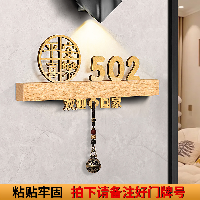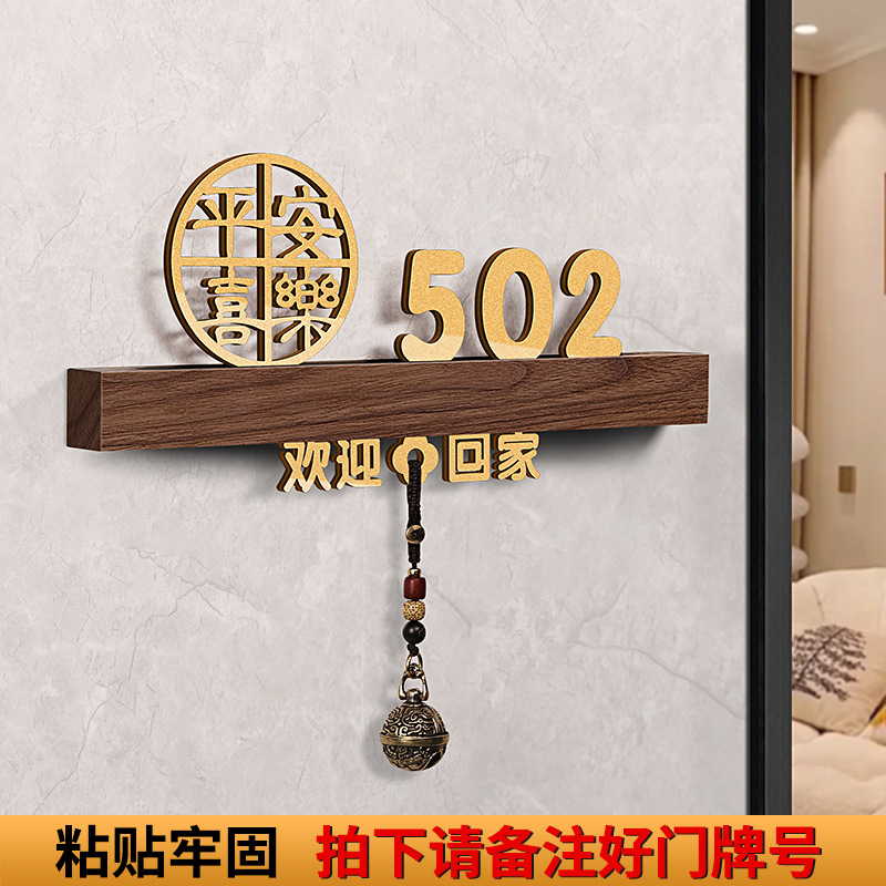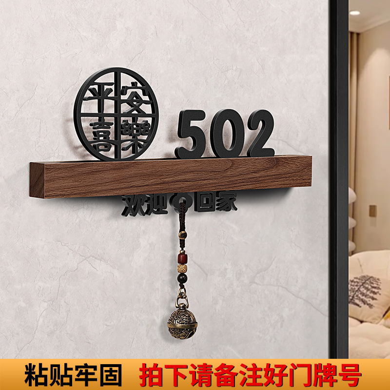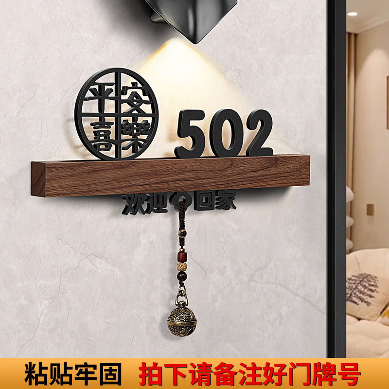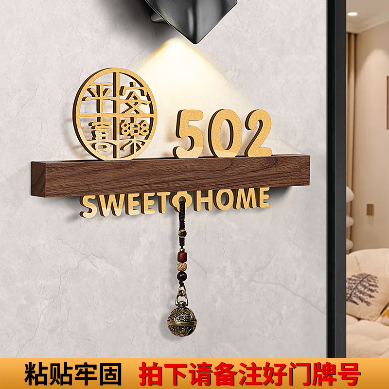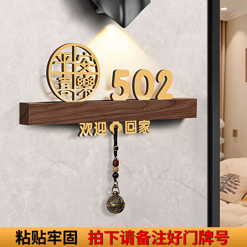 - 規格型號:胡桃木+平安喜樂+歡迎回家黑【帶燈/送鈴鐺】;20x10cm