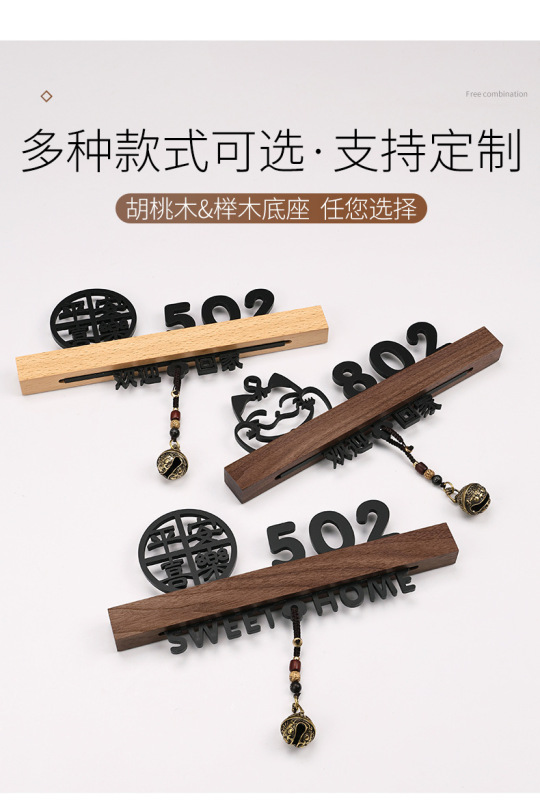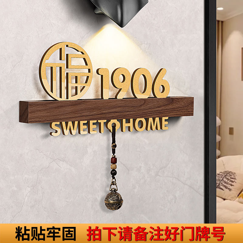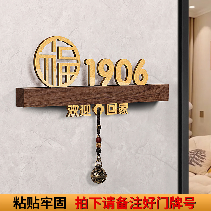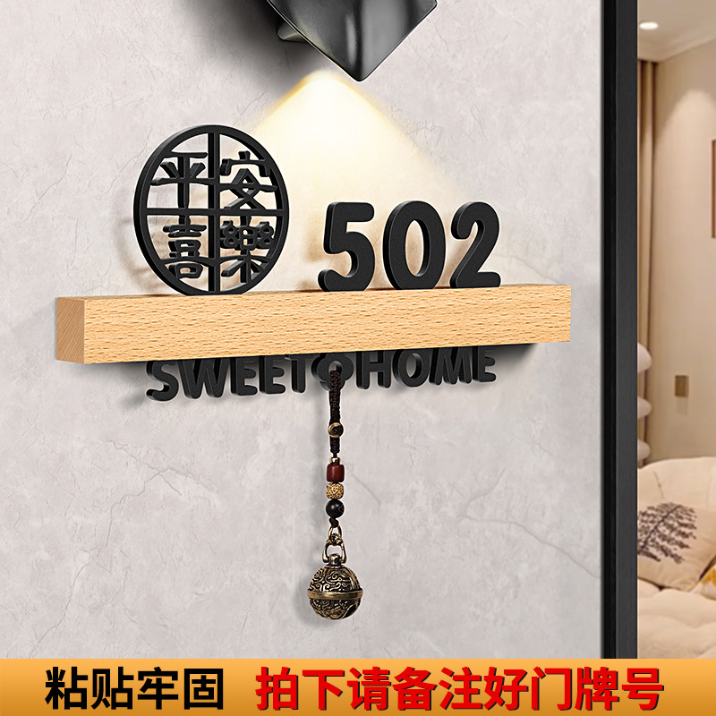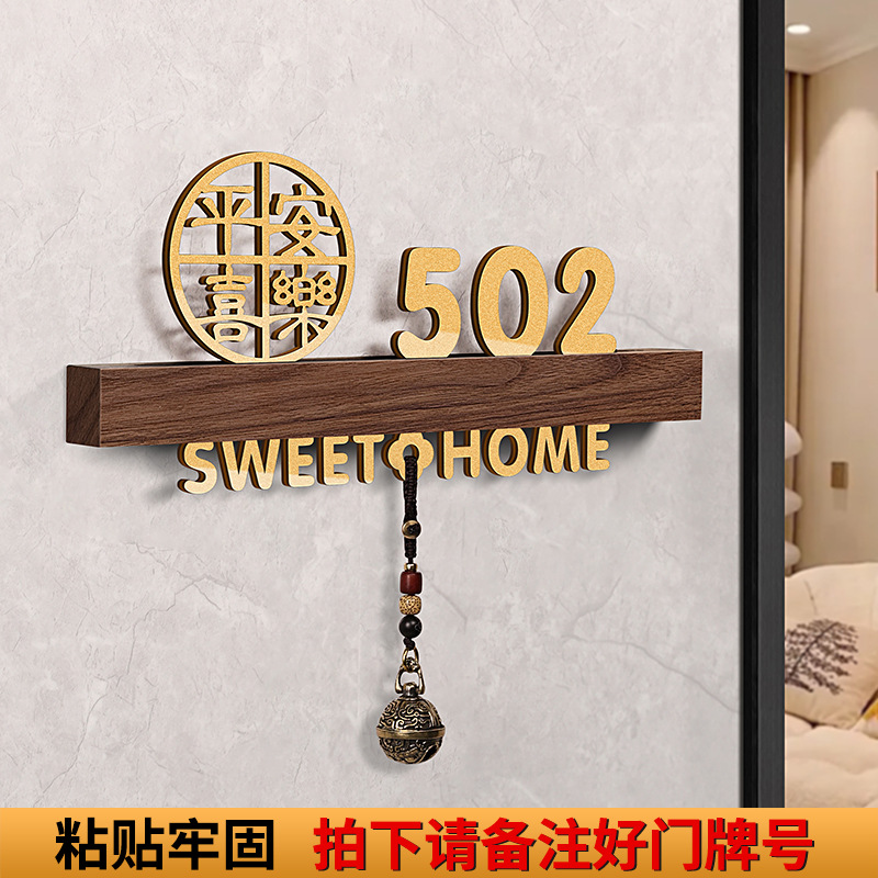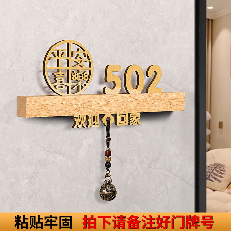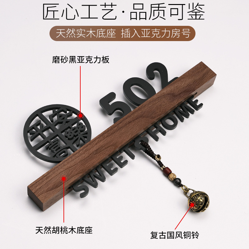 - 規格型號:胡桃木+平安喜樂+歡迎回家黑【帶燈/送鈴鐺】;20x10cm