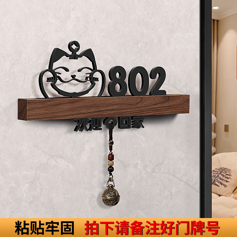 - 規格型號:胡桃木+招財貓+歡迎回家黑【帶燈/鈴鐺】;25x11cm