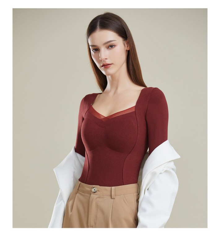 - Neck shape: V-shaped collar
