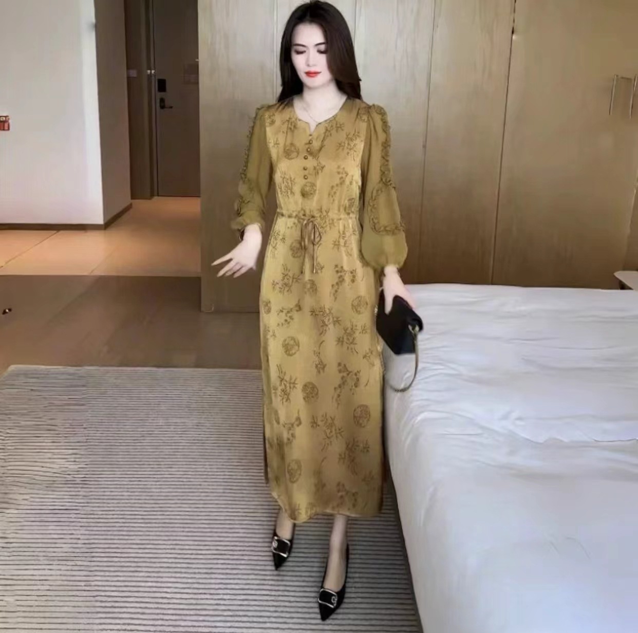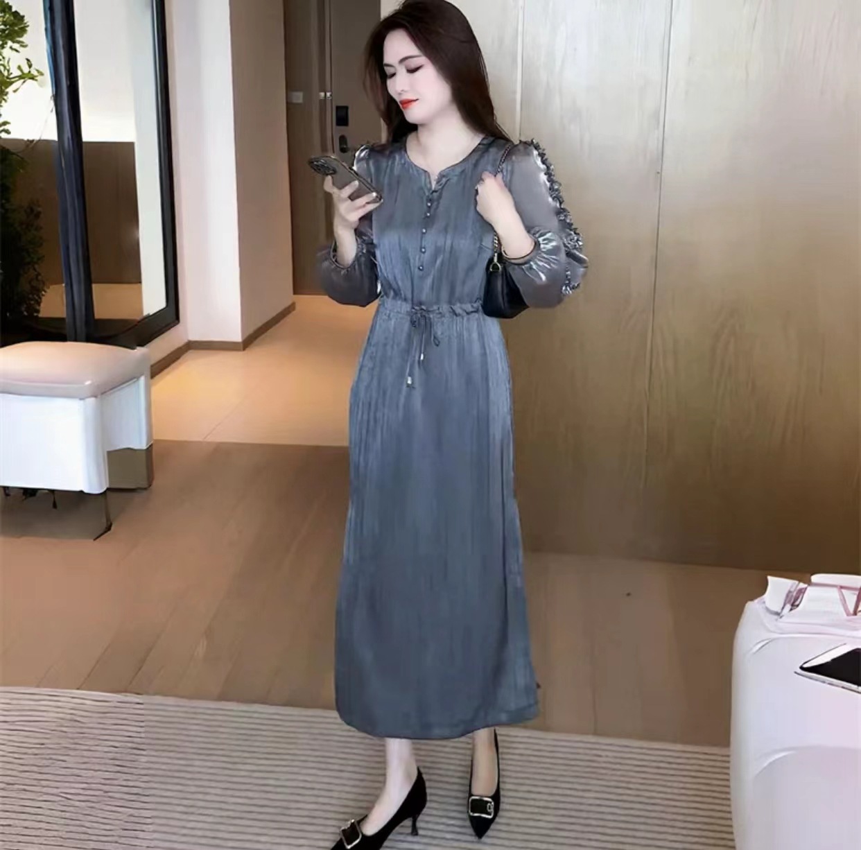 - Skirt length: mid-length skirt
