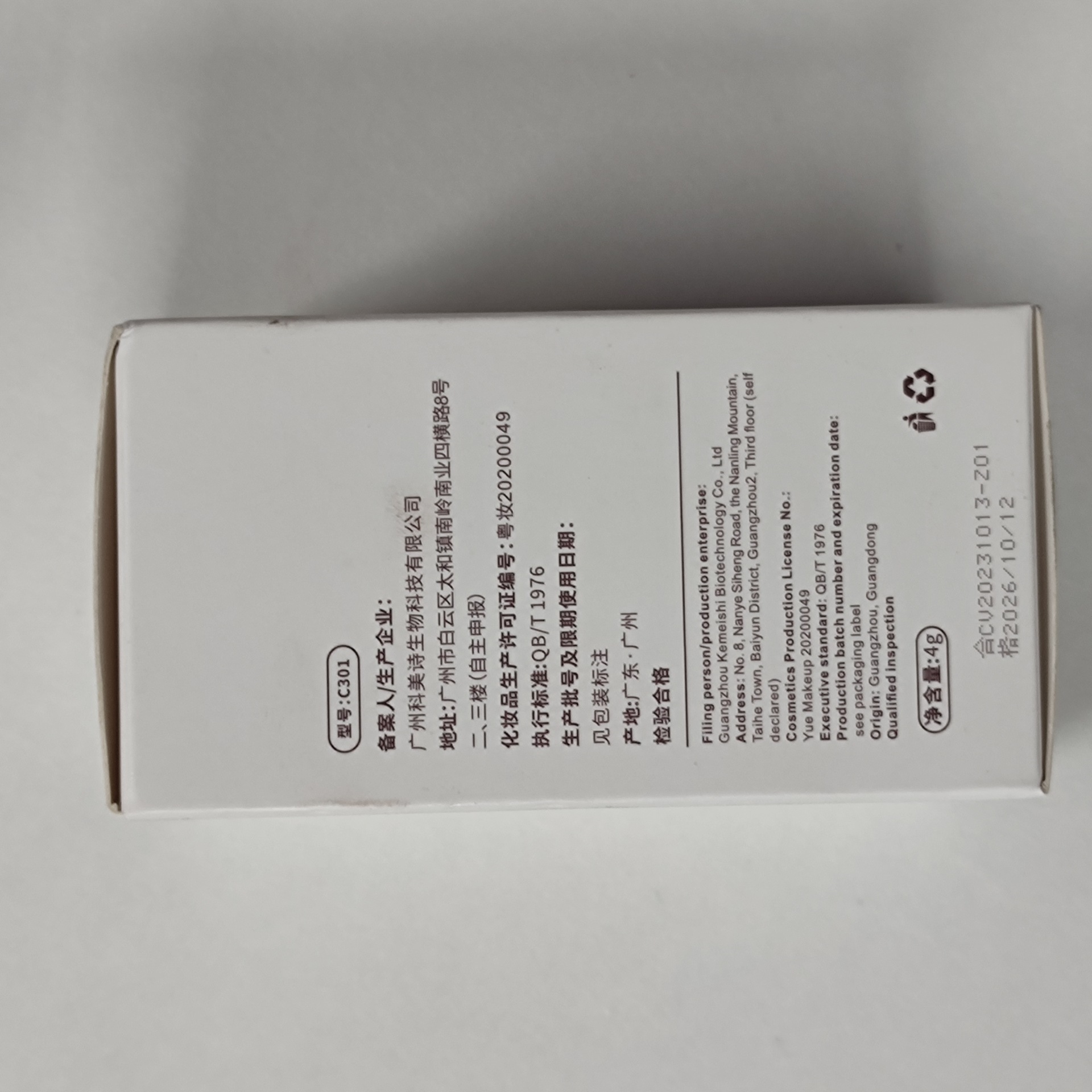 - 生產許可證號:粵妝20200049