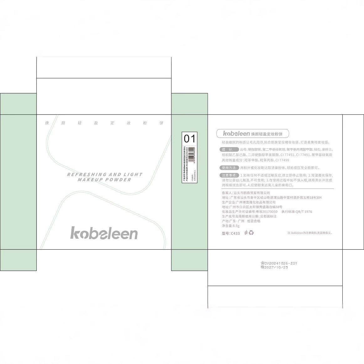 - 產品名稱:kobeleen煥顏輕盈定妝粉餅