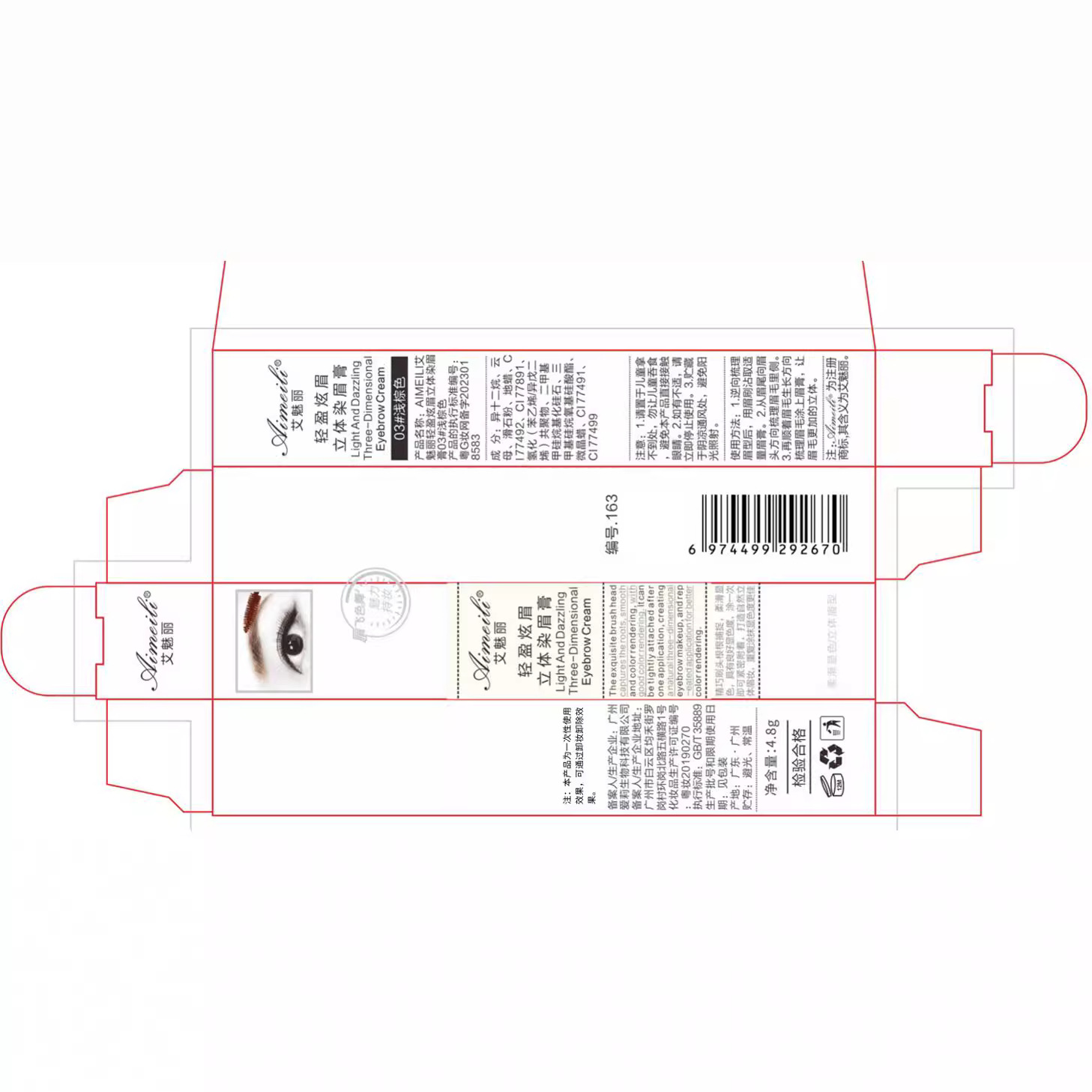 - 產品名稱:AIMEILI艾魅麗輕盈炫眉立體染眉膏01#深棕色