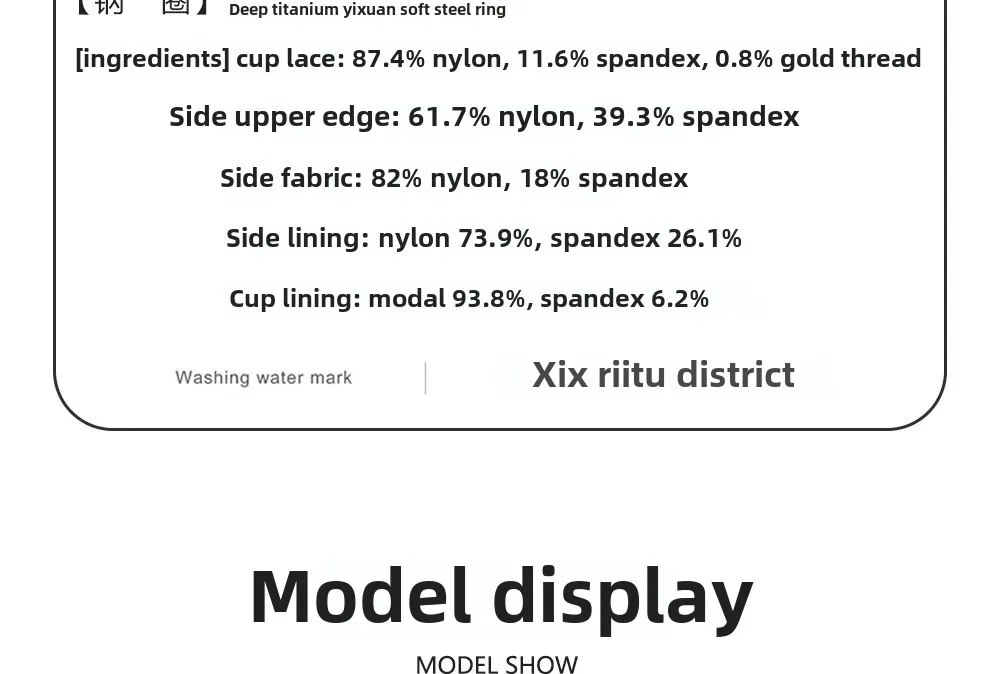 - Lining Composition: Spandex