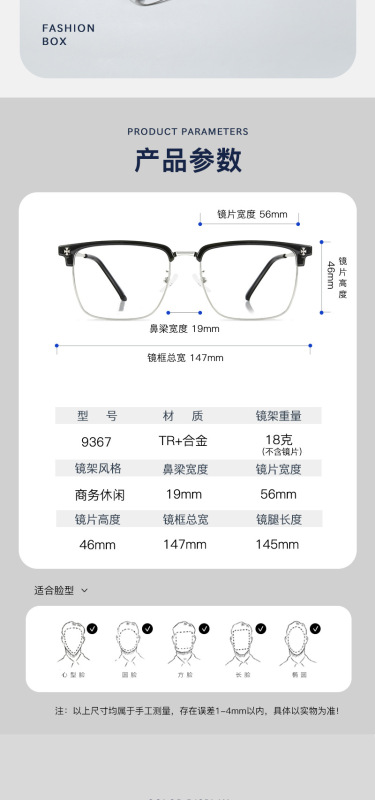 - 眼鏡款式:方框