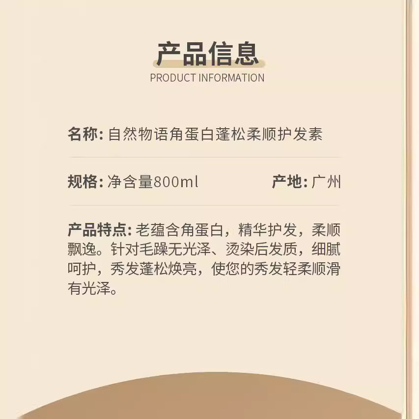 - 產品名稱:角蛋白蓬鬆柔順護髮素