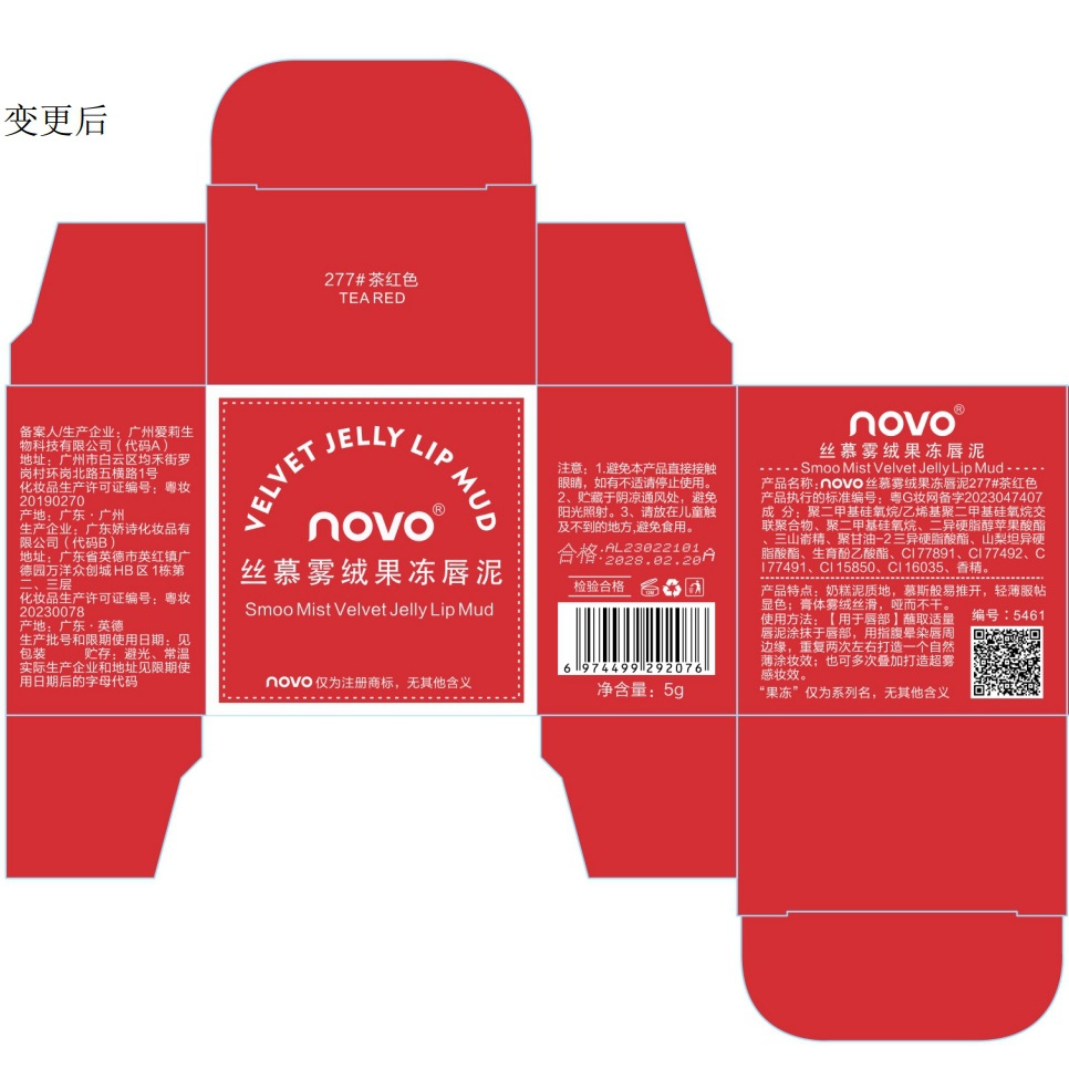 - 產品名稱:novo絲慕霧絨果凍唇泥277#茶紅色