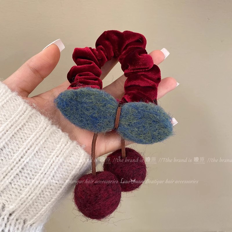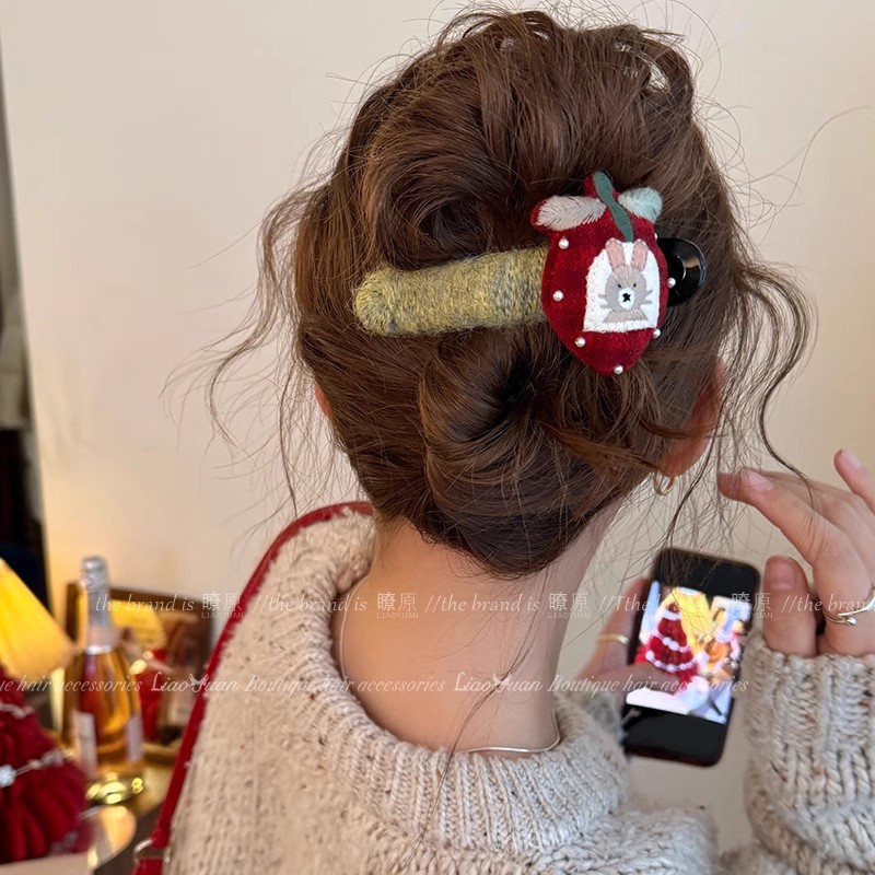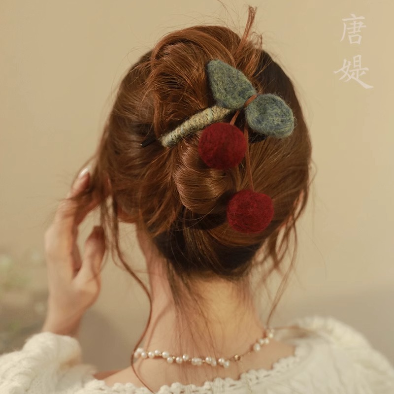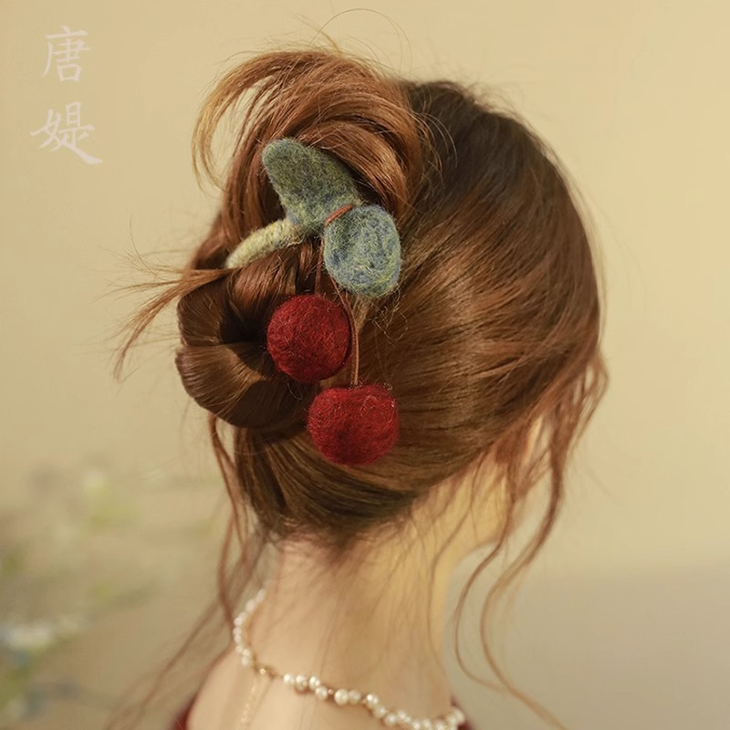 - 樣式:新中式毛線櫻桃抓夾女高級感扭扭髮夾後腦勺一字盤發鯊魚夾子