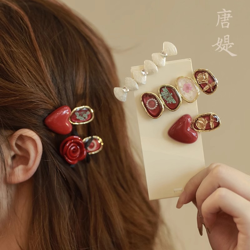 - 樣式:紅色熱烈~永生花玫瑰碎髮夾邊夾側邊劉海夾女前額鴨嘴夾2024新款