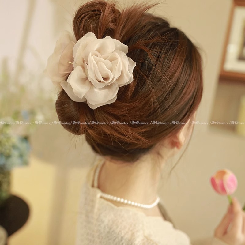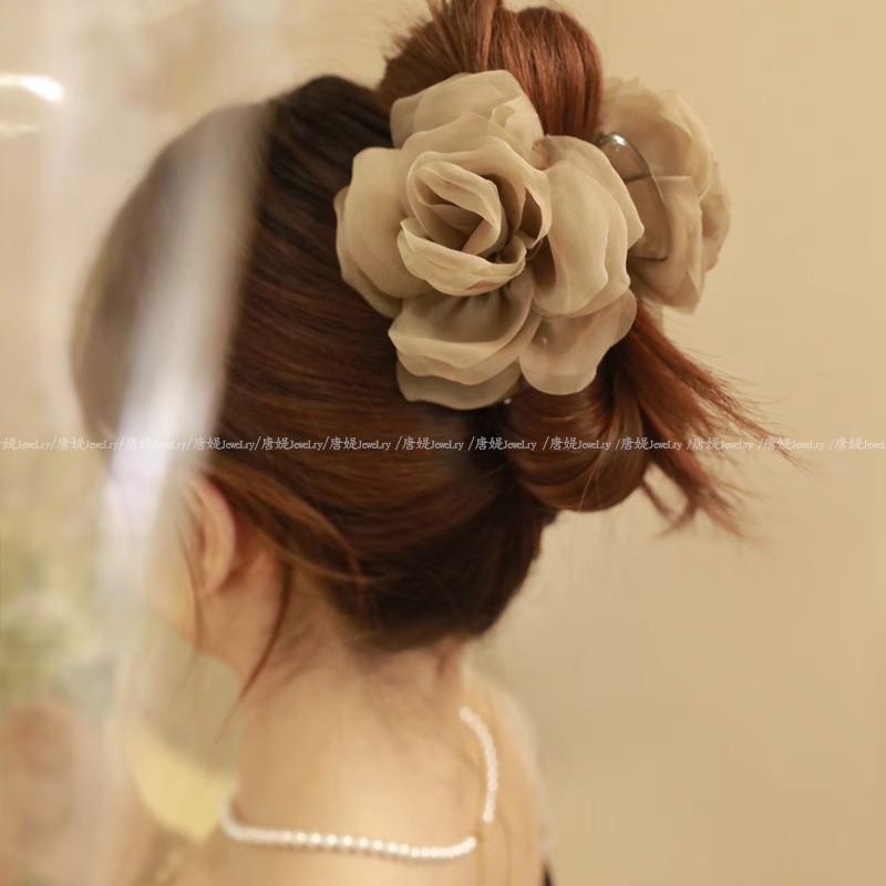 - Style: Retro Net Flower Braided Hair Clip for Women 2025 New Arrival High-end Feel Entering Spring Shark Hair Clip Hair Accessory at the Back of the Head
