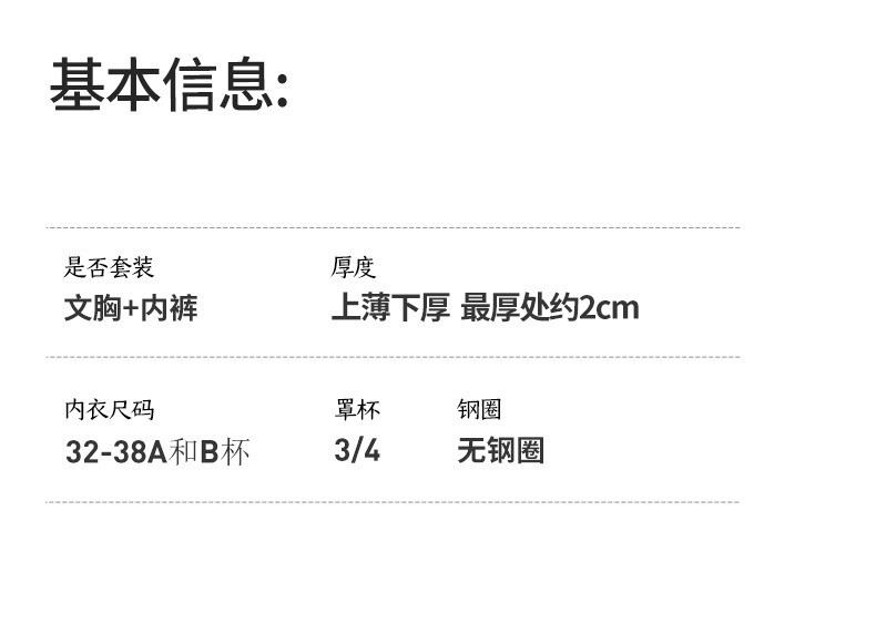 - 罩杯型:3/4罩杯