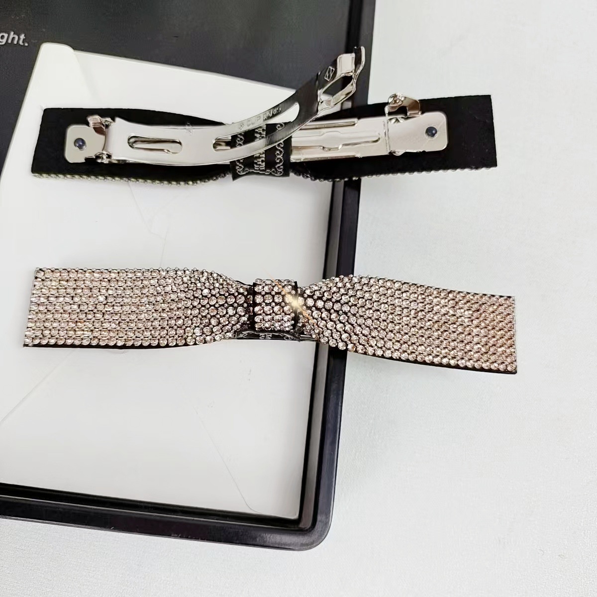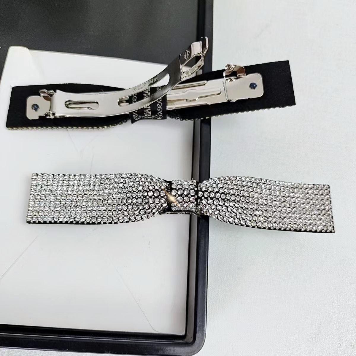 - Style: Diamond-embellished spring clip with high-end Chanel-inspired fashion hair accessory