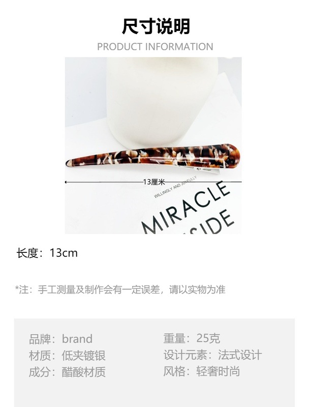 - 樣式:法式醋酸鴨嘴夾大號牛角夾
