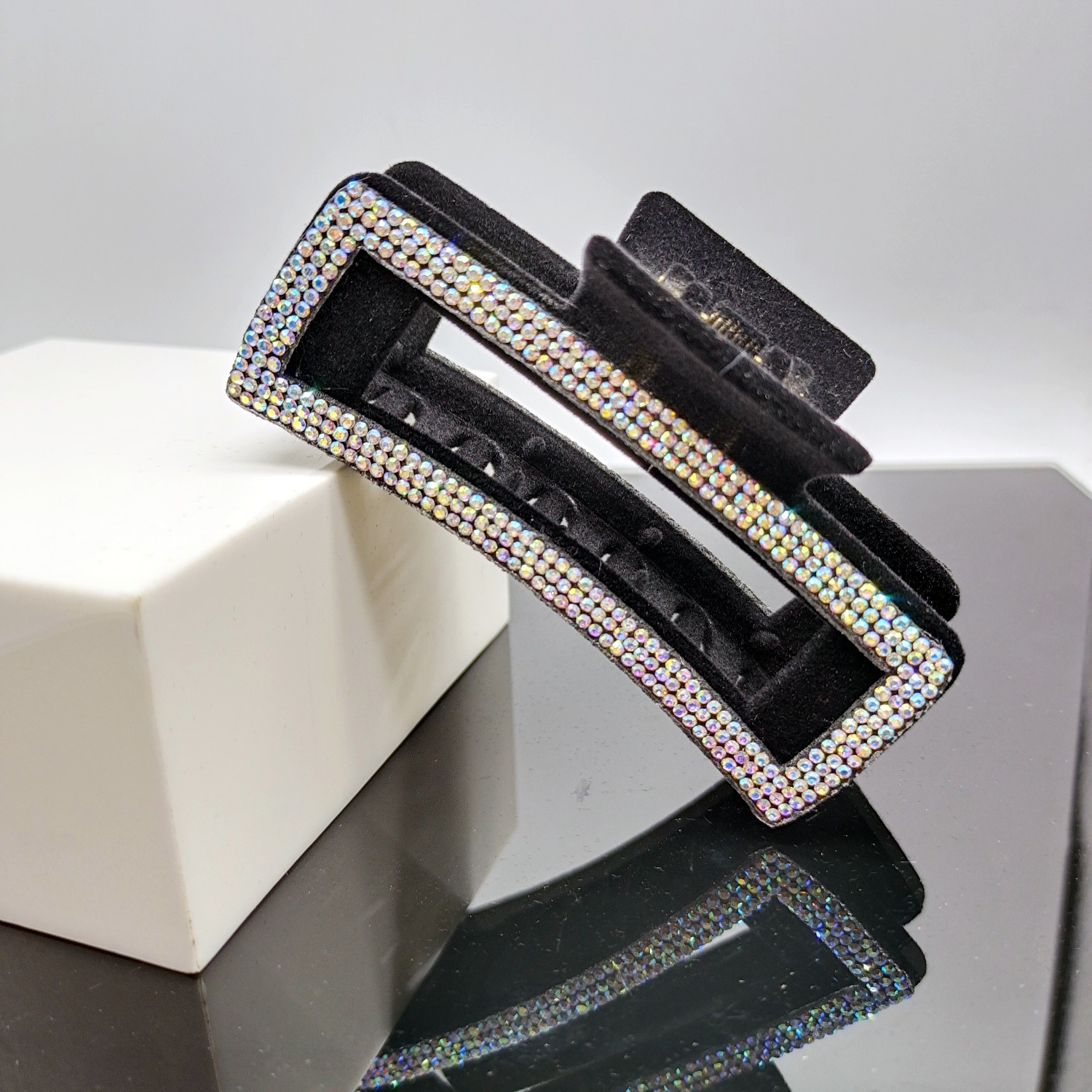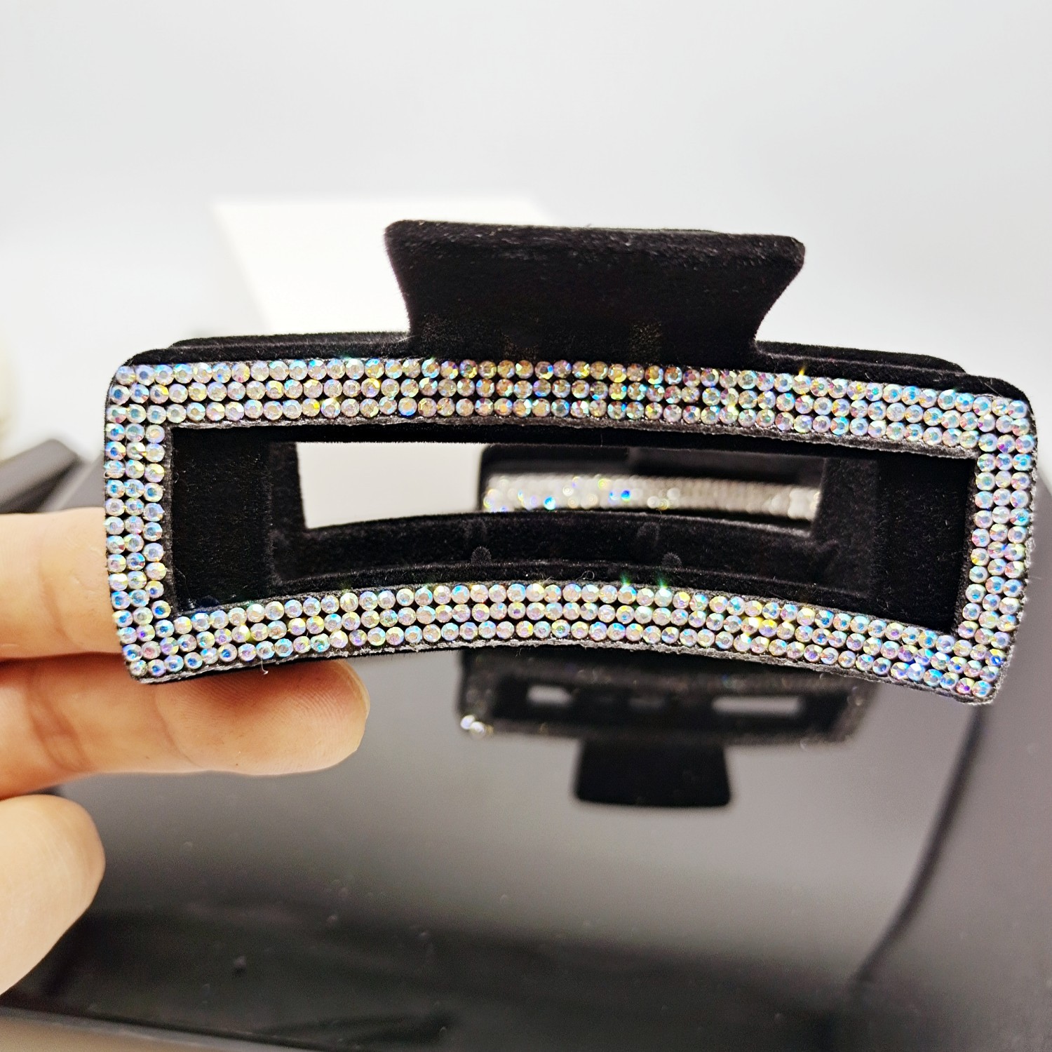 - 樣式:歐美跨境時尚百搭滿鑽植絨大號抓夾女