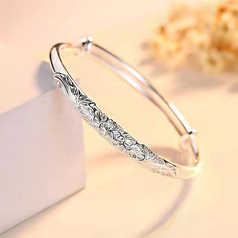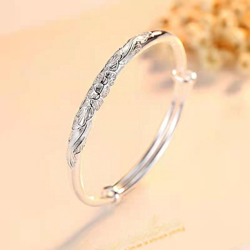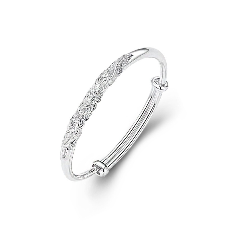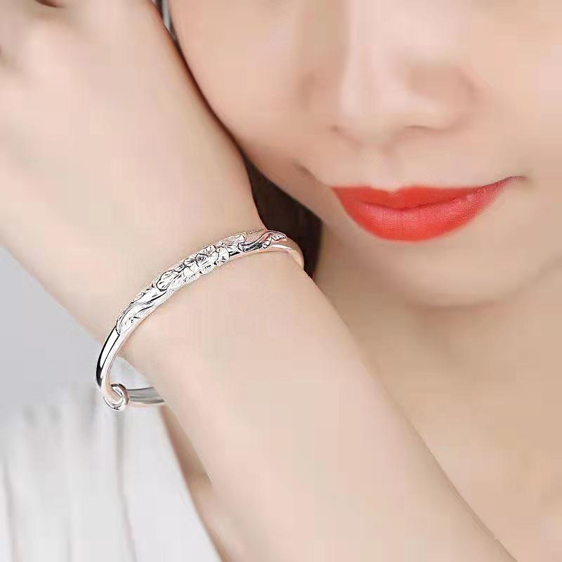 - 生產編號:直播圓形富貴花999純銀手鐲維拉鍍銀手環廠家現貨飾品廠家批發