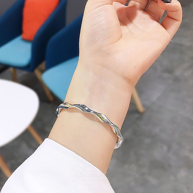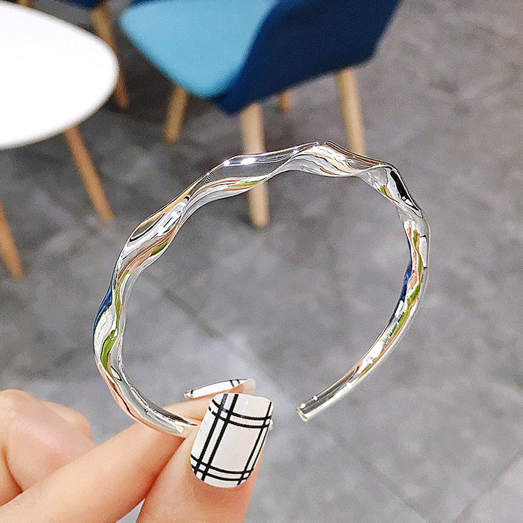 - 生產編號:紐線波浪亮面9999鍍銀手鐲扭紋韓范時尚冷淡風麻花開口銀手鐲女