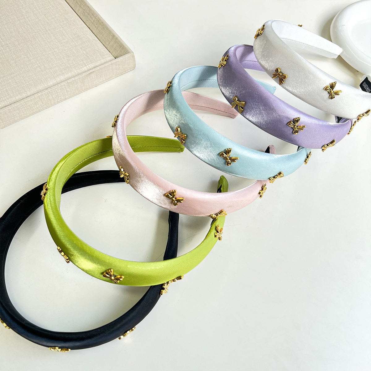 - 形象:緞面高顱頂純色簡約蝴蝶結