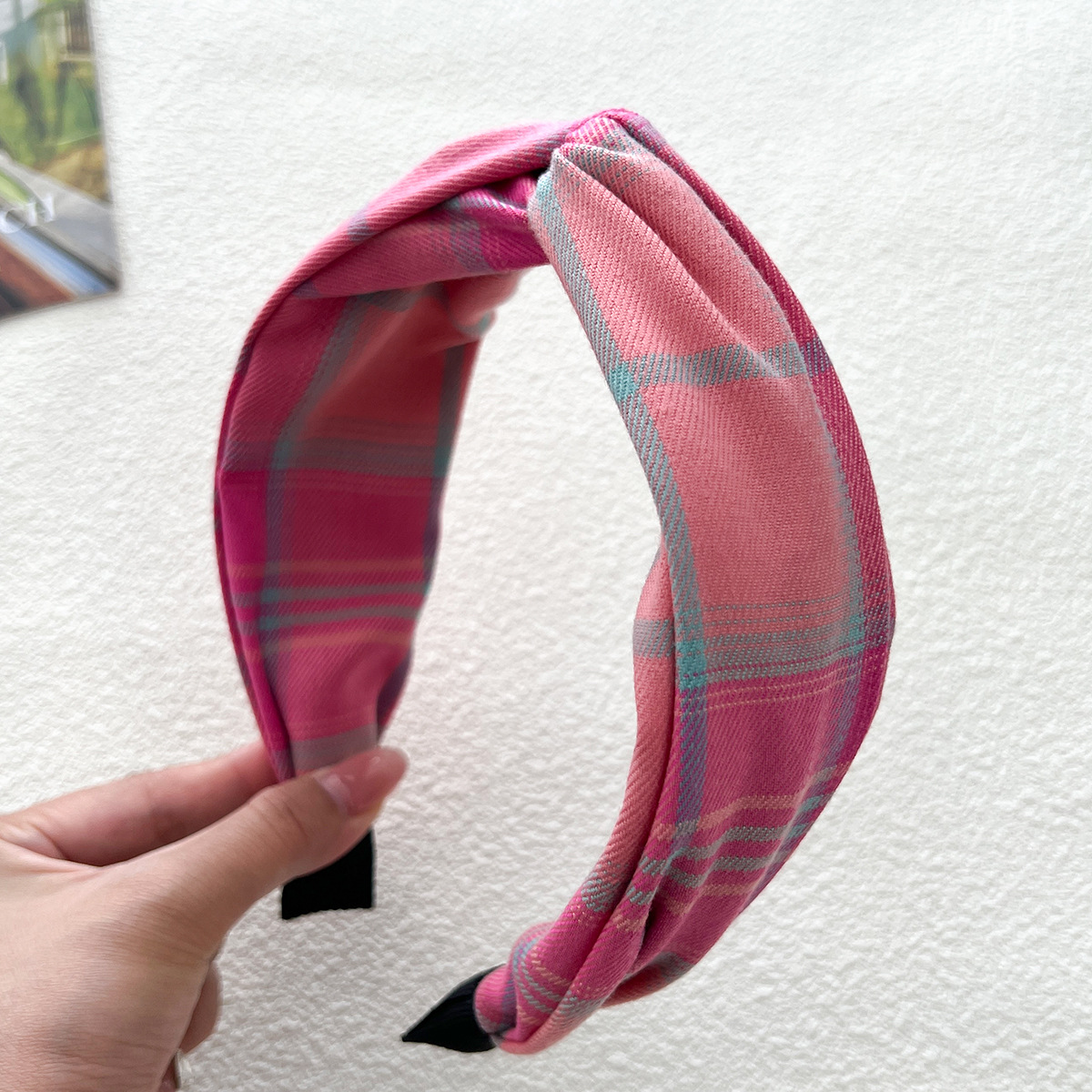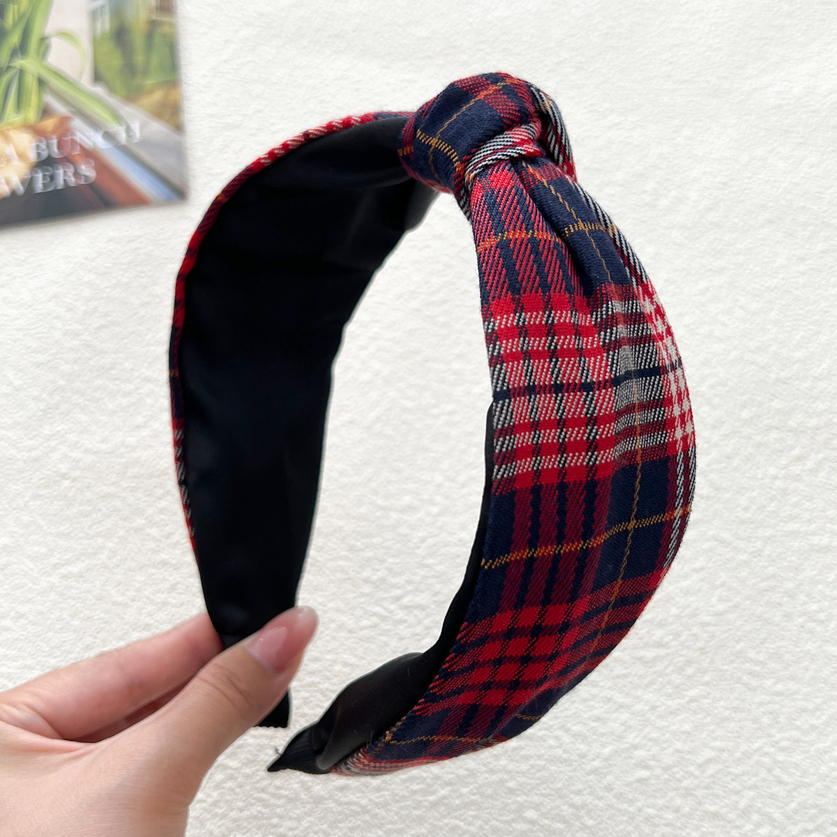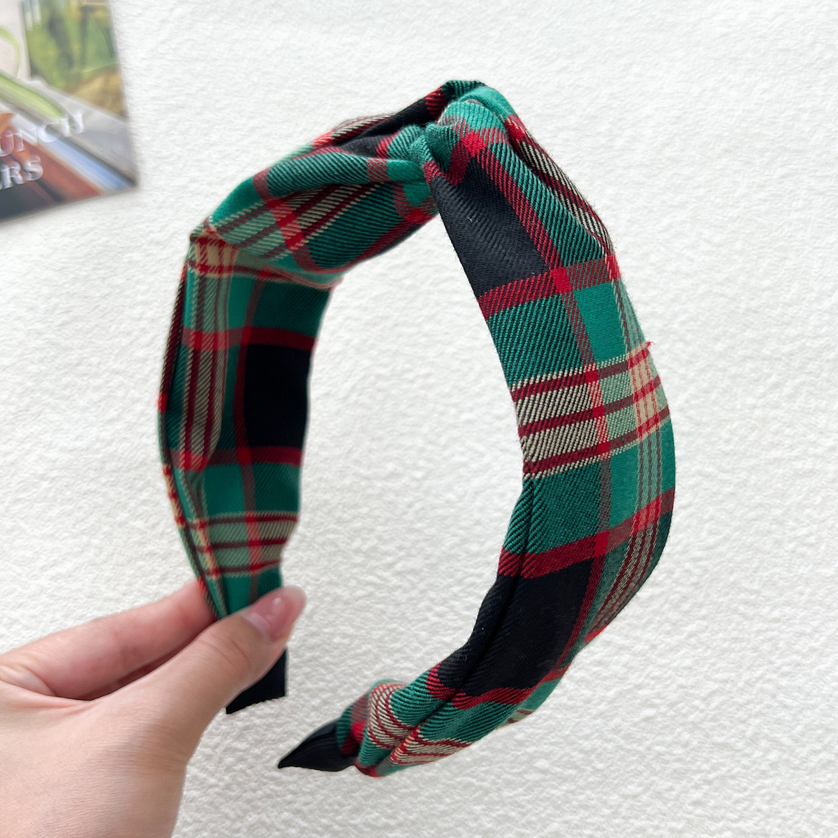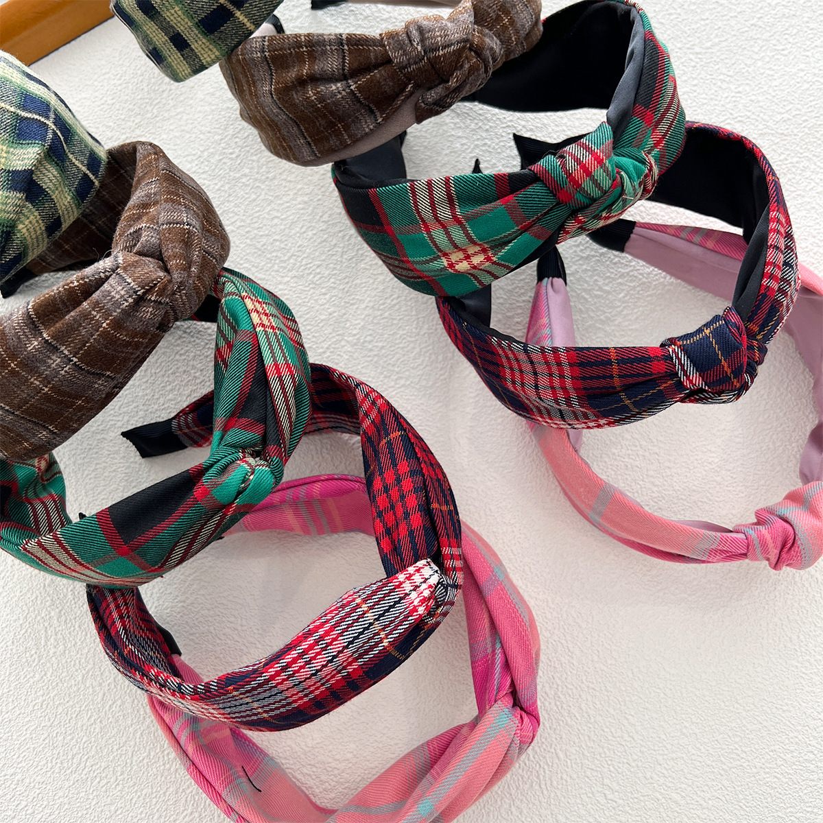 - 打結髮箍:格紋