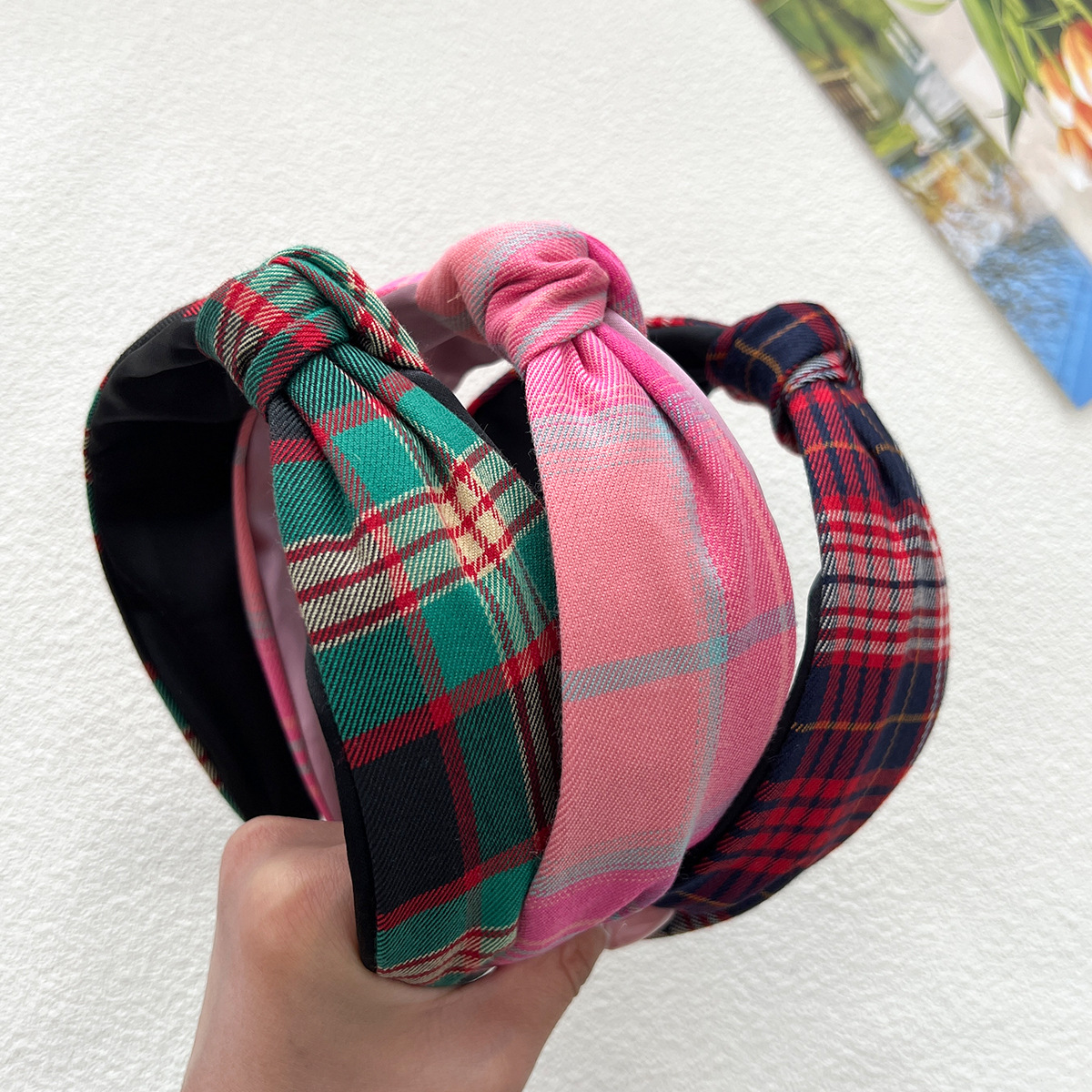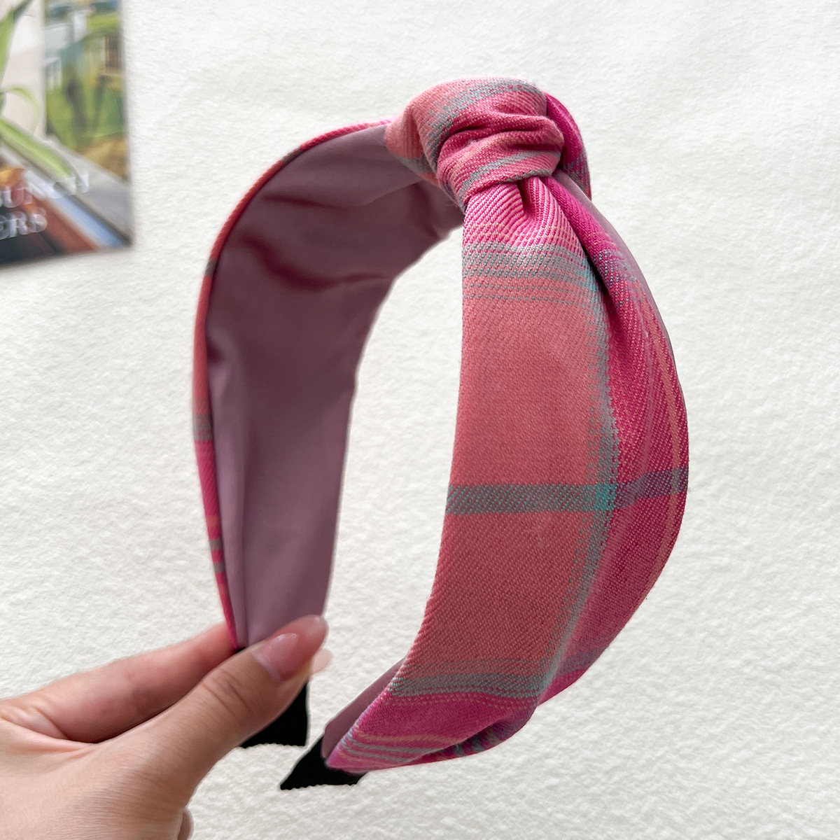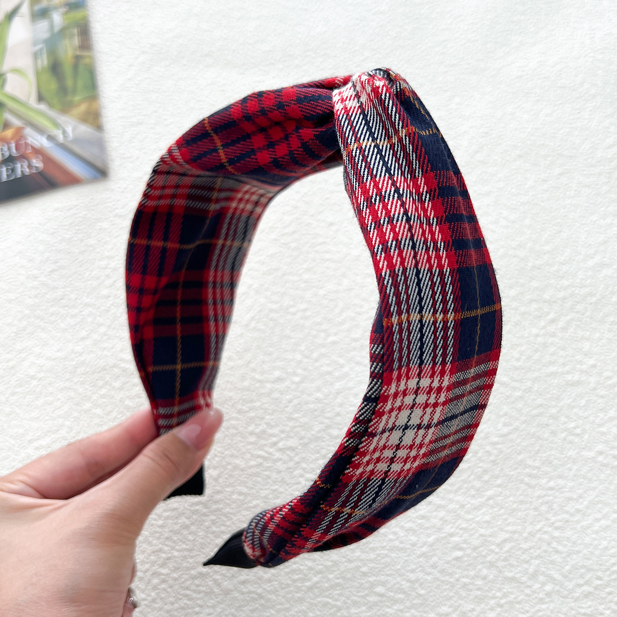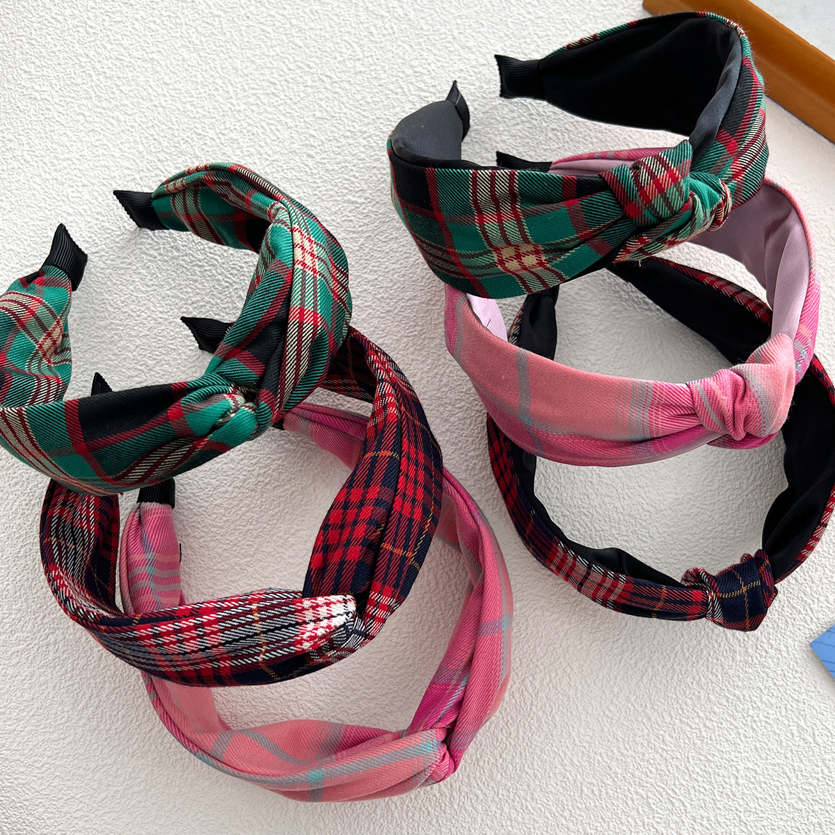 - 打結髮箍:格紋