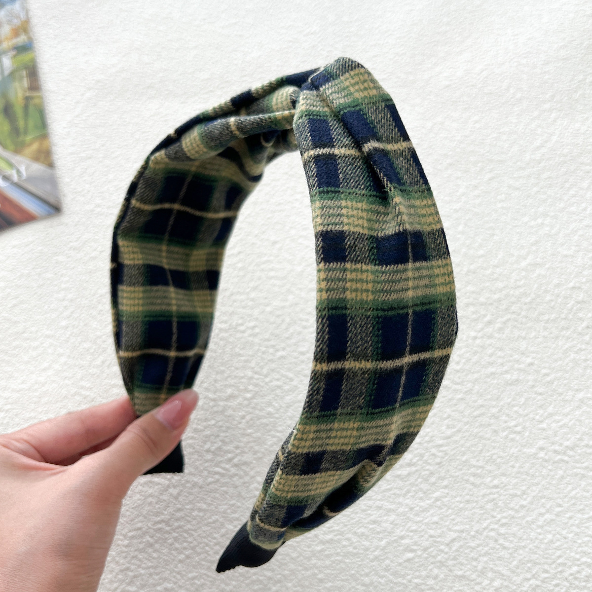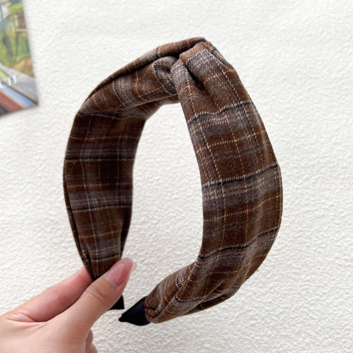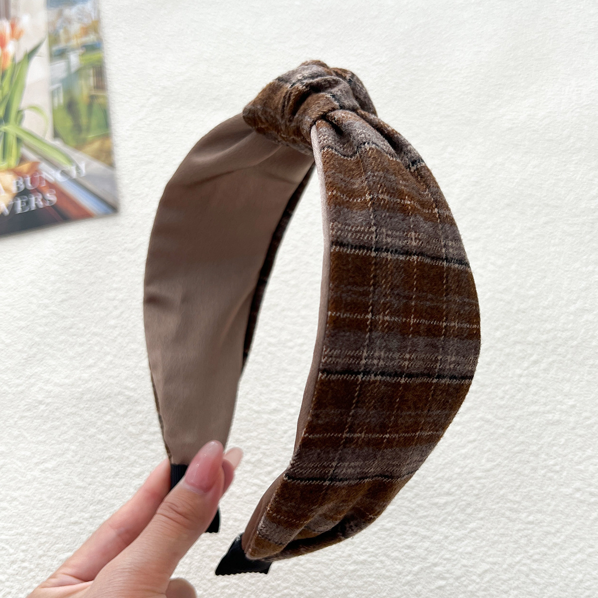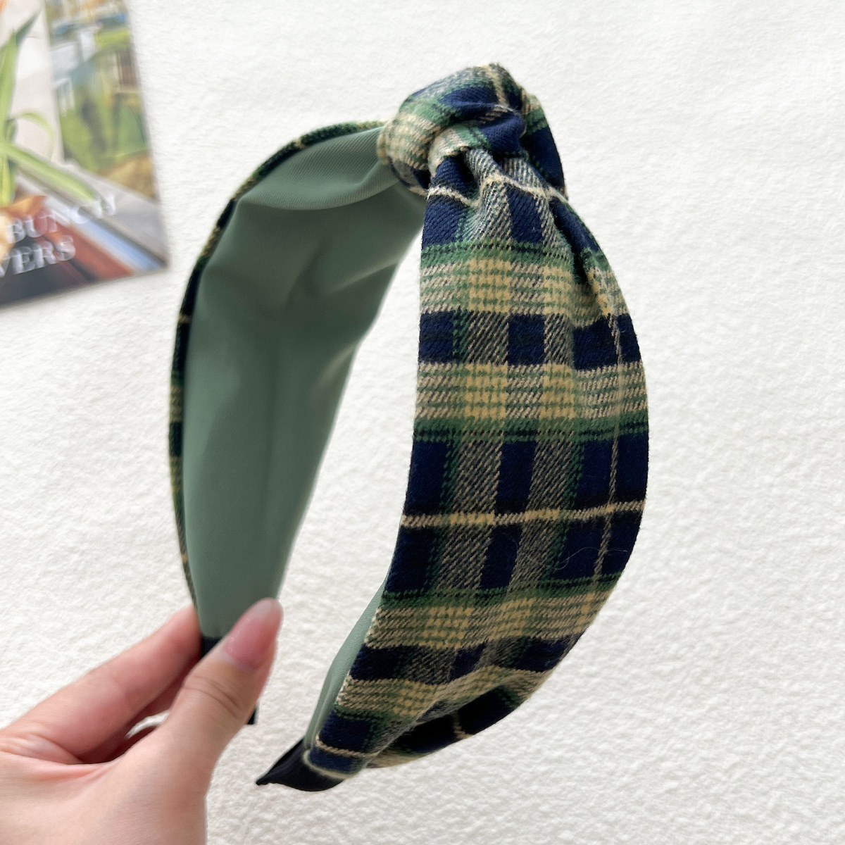 - 打結髮箍:格紋