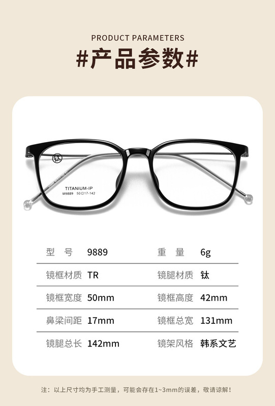 - 眼鏡款式:方框