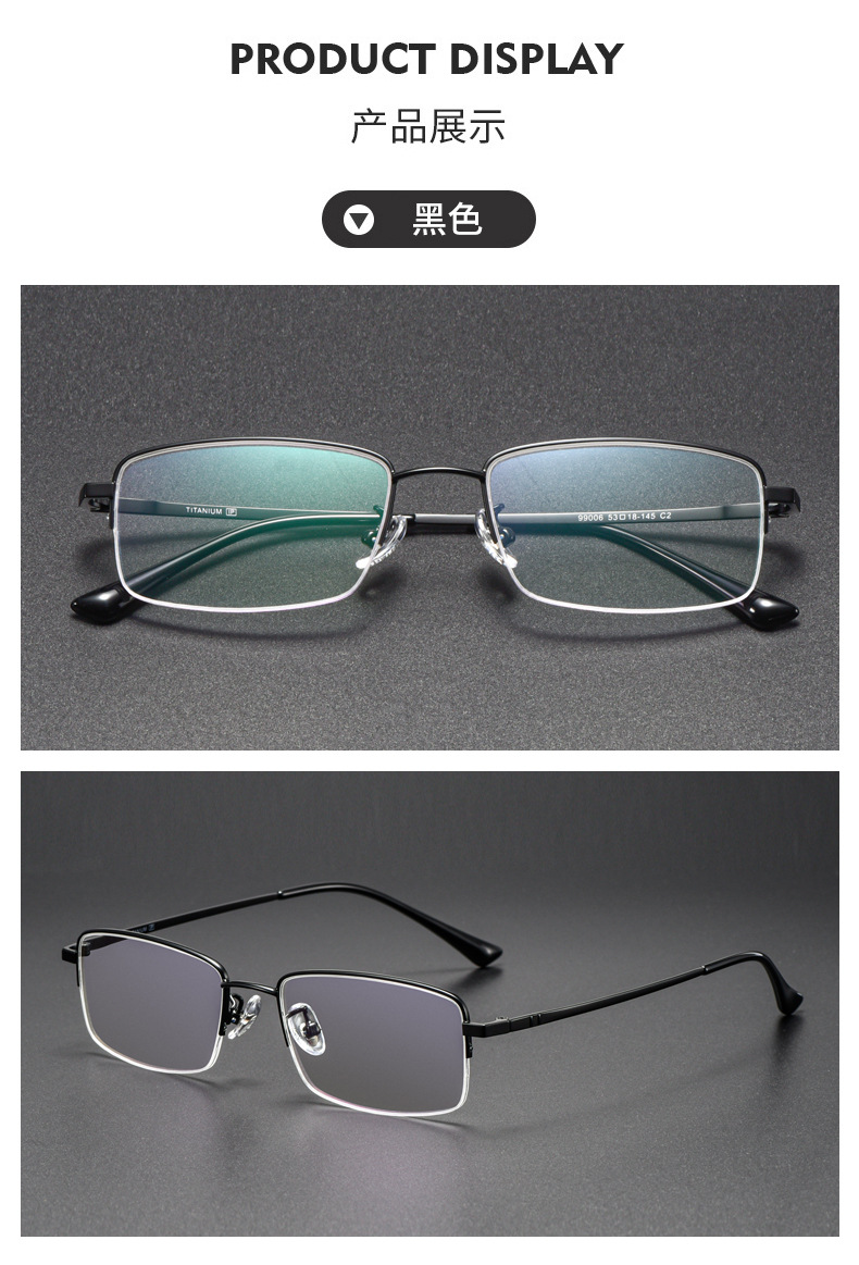 - Eyeglass Structure: Semi-rimless