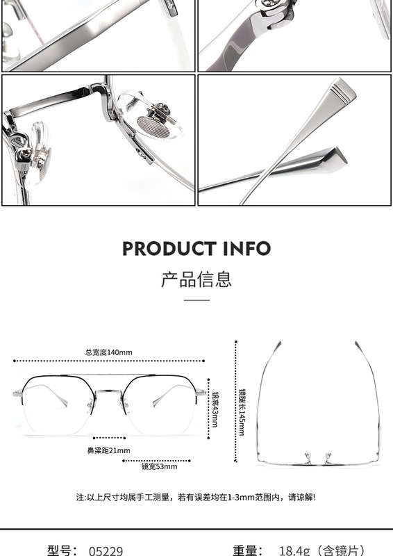 - Eyeglass Structure: Semi-Rimless