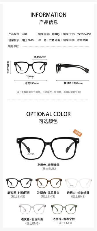 - 眼鏡款式:方框