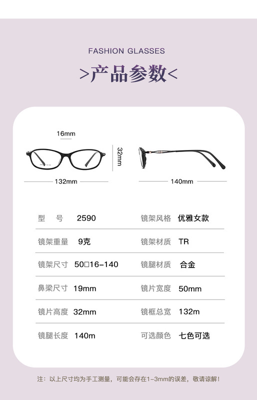 - 眼鏡款式:橢圓框