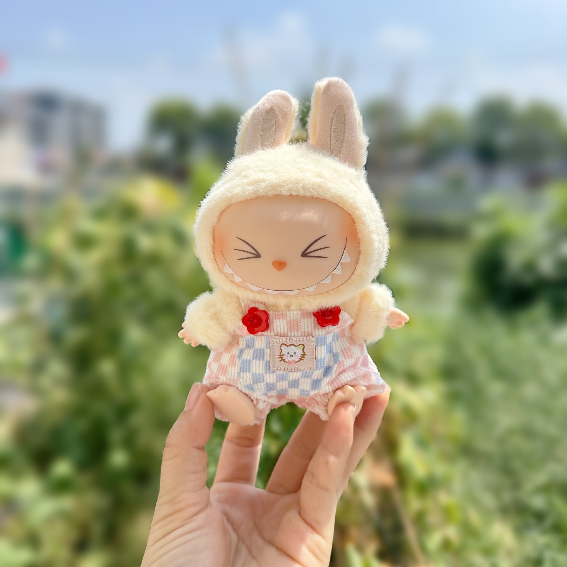 - Height: Seated with fabric clothing, excluding doll