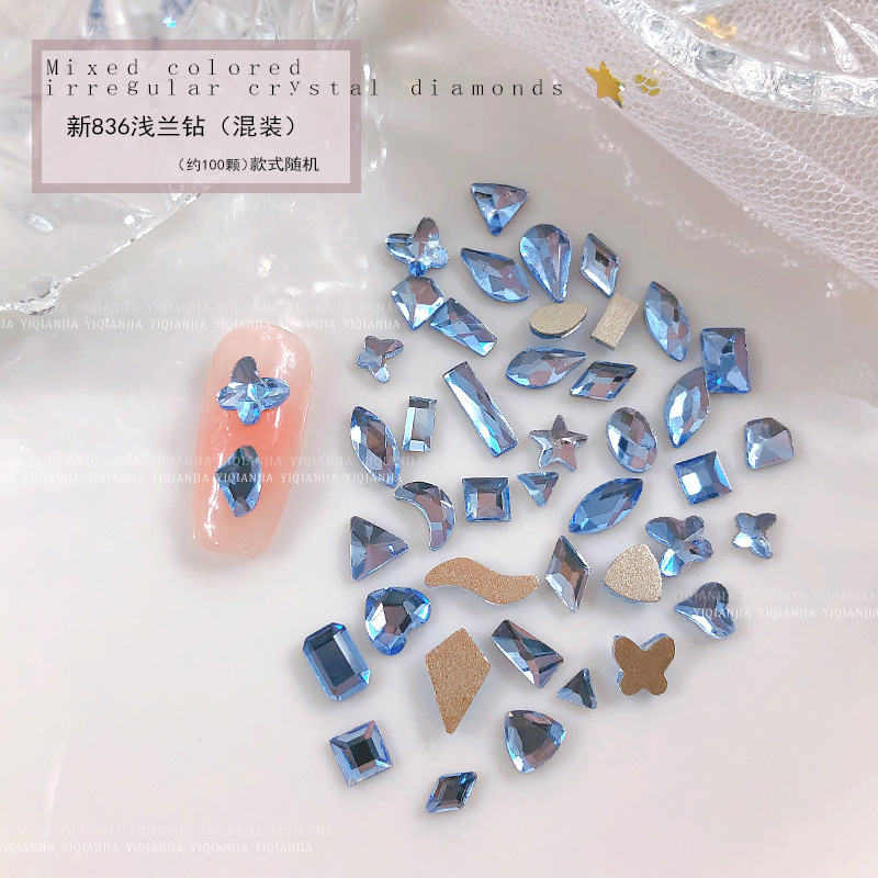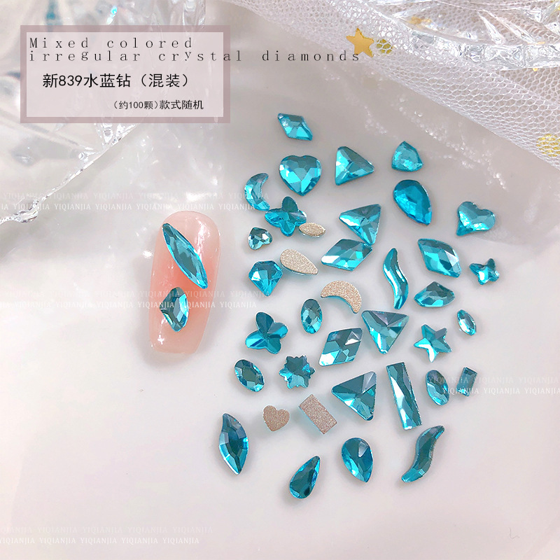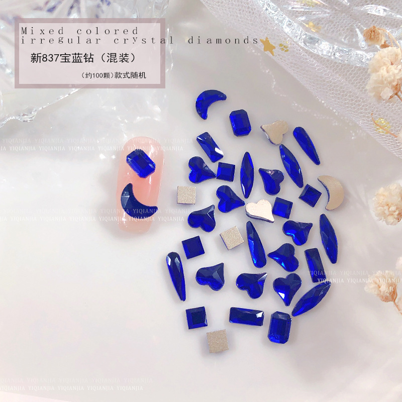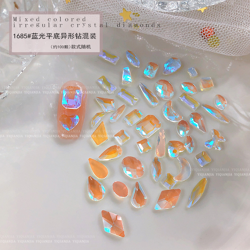 - 規格:1685#藍光平底異形鑽約100粒混