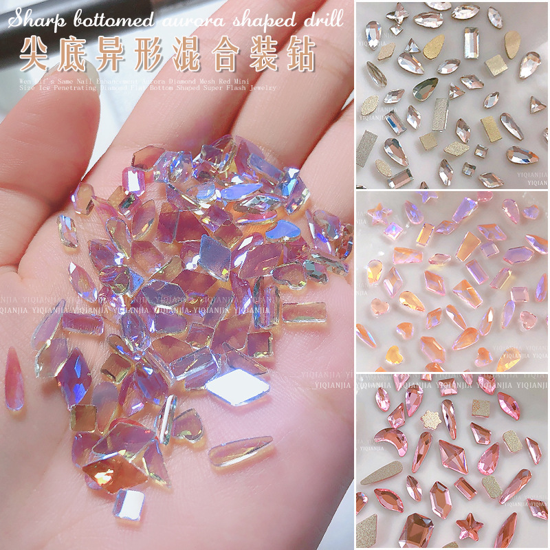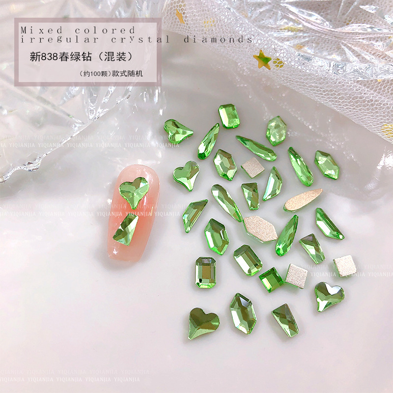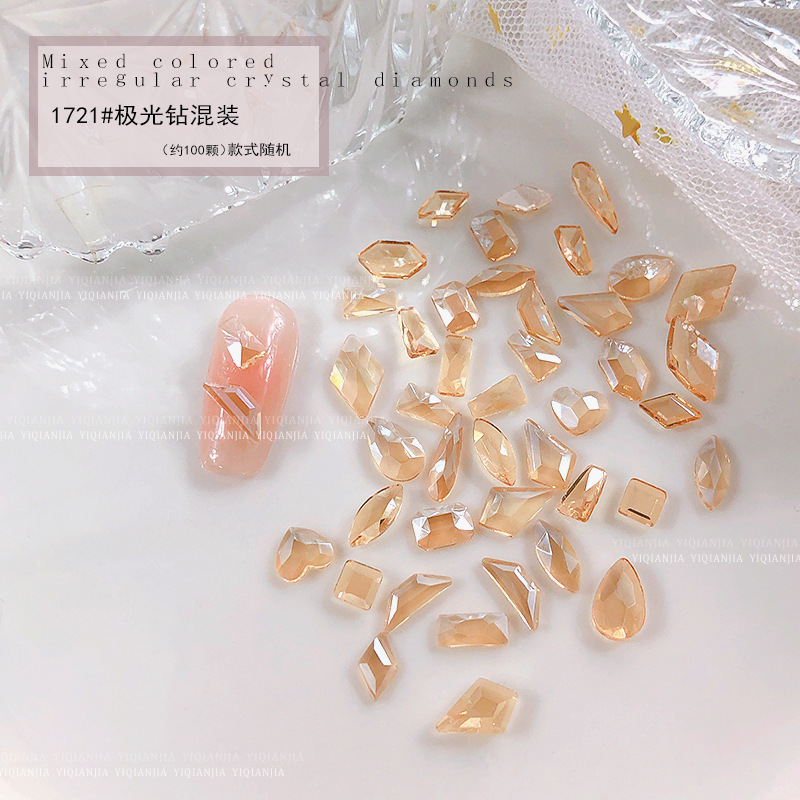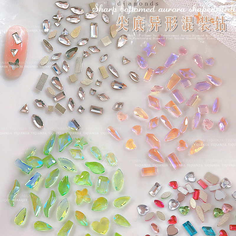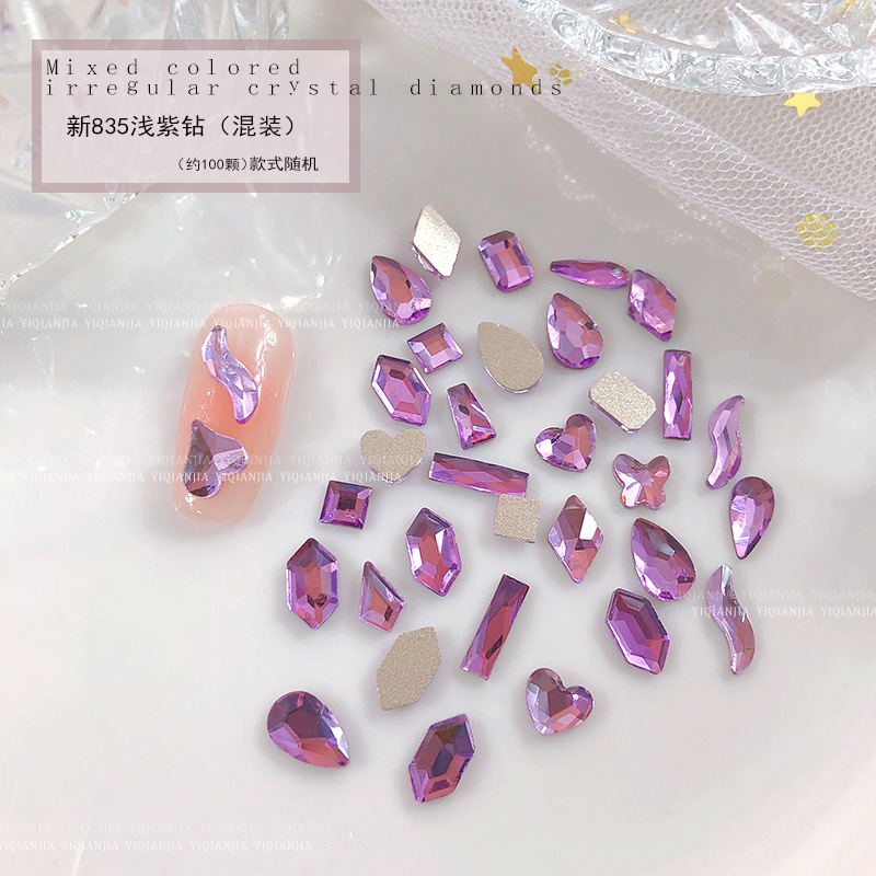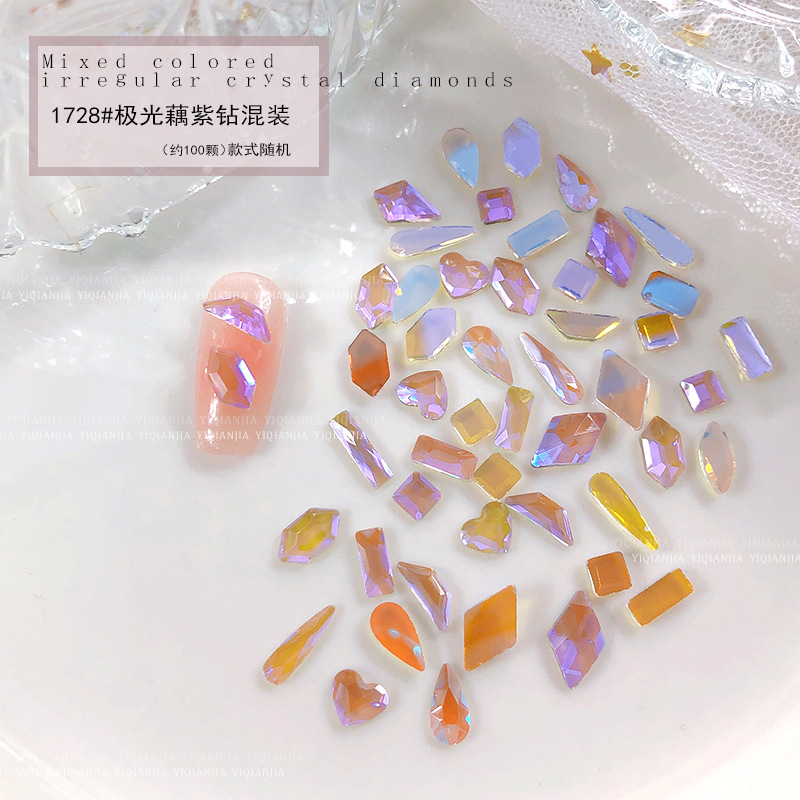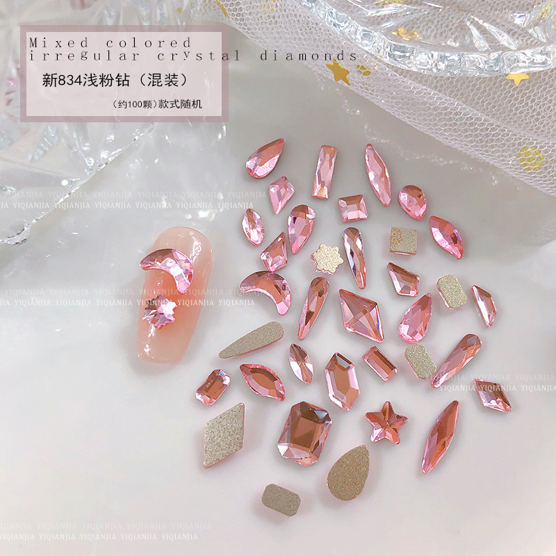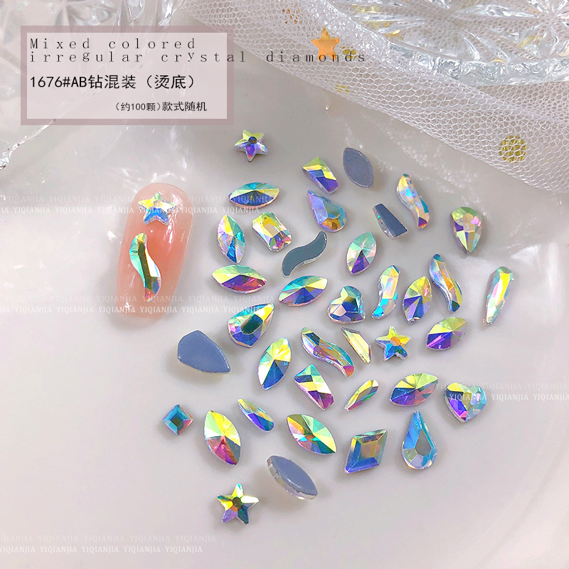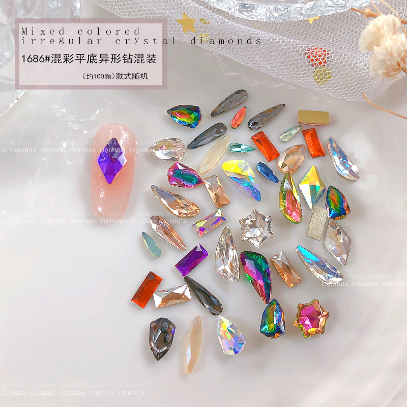 - 規格:1686#混彩平底異形鑽約100粒混