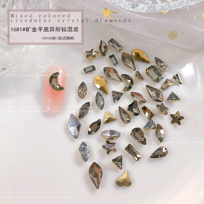 - 規格:1681#礦金平底異形鑽約100粒混