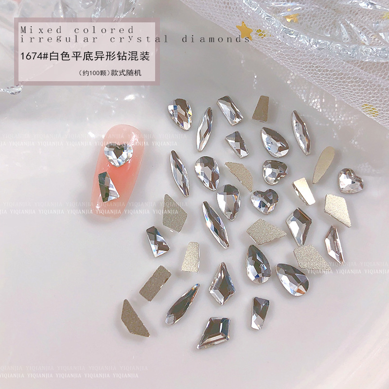 - 規格:1674#白色平底異形鑽約100粒混