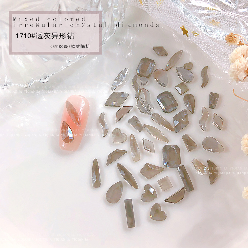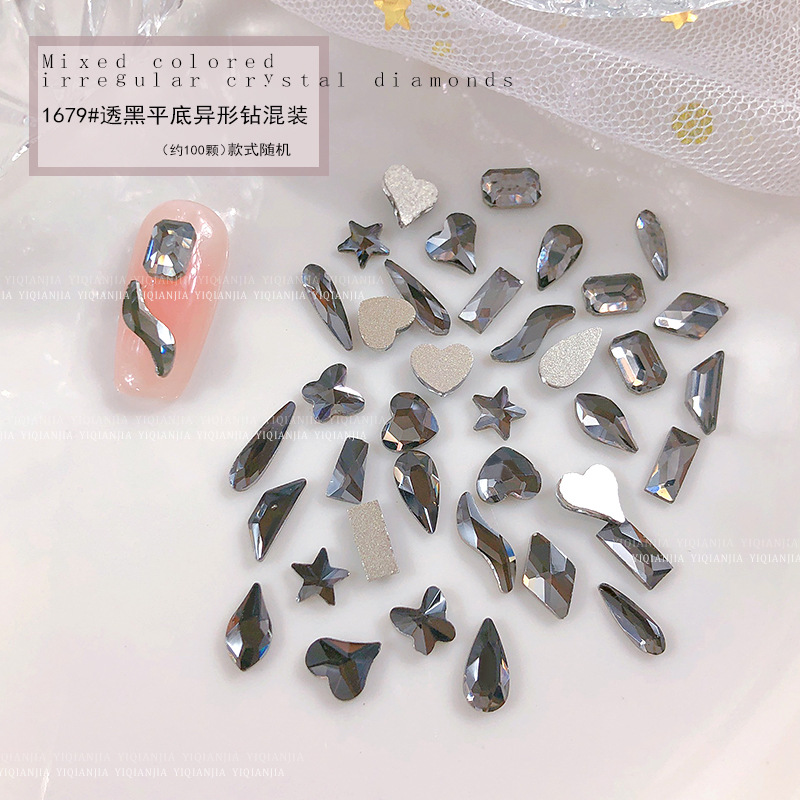 - 規格:1679#透黑平底異形鑽約100粒混