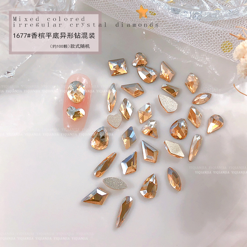 - 規格:1677#香檳平底異形鑽約100粒混