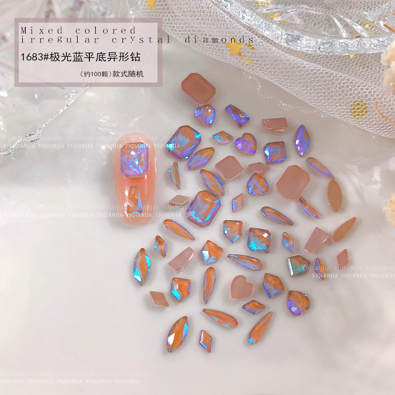 - 規格:1683#極光藍平底異形鑽約100粒