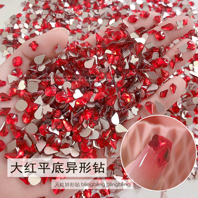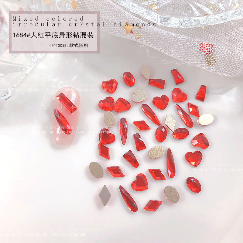 - 規格:1684#大紅平底異形鑽約100粒混