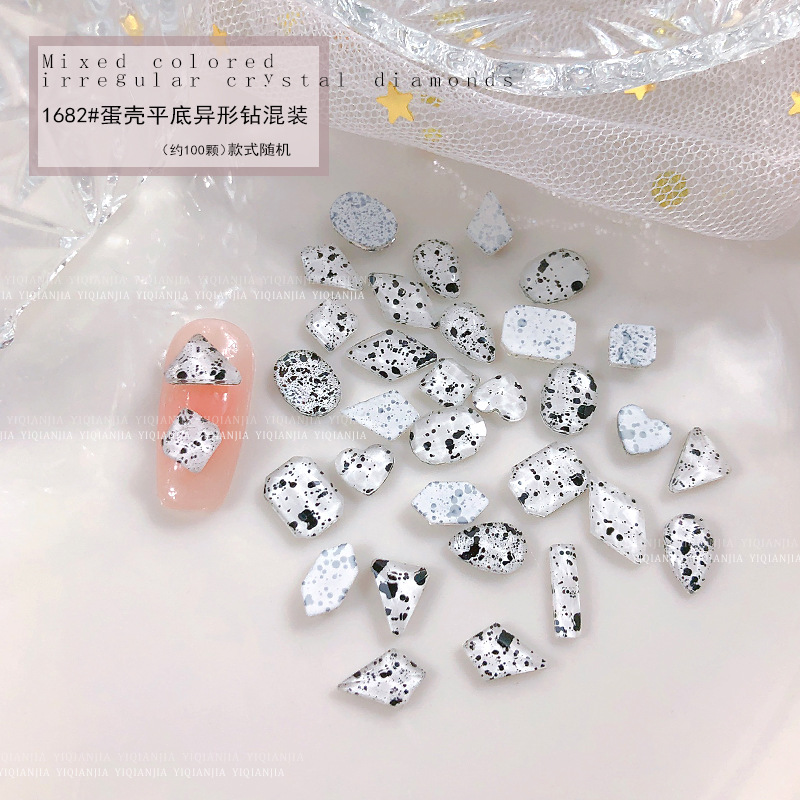 - 規格:1682#蛋殼平底異形鑽約100粒混