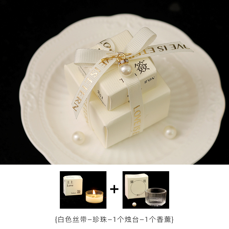 - Specification: White Ribbon - 1 Candle Holder + 1 Scented Candle (Gentle) Ribbon Tied