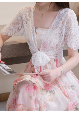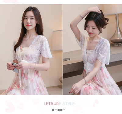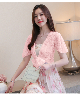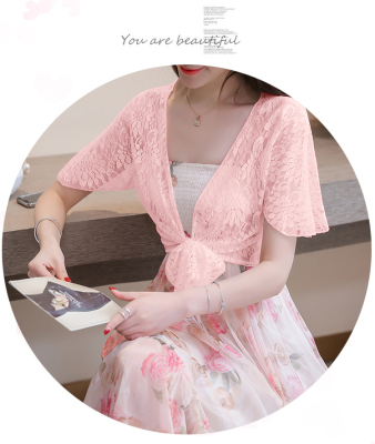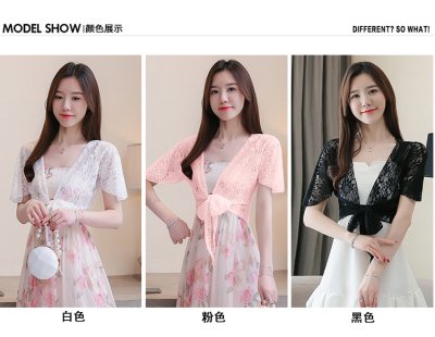 Summer dress Korean version of women's summer dress, short thin shoulder sunscreen shirt, lace 100-fold cardigan, small shawl