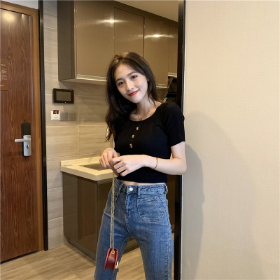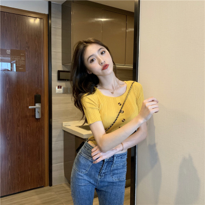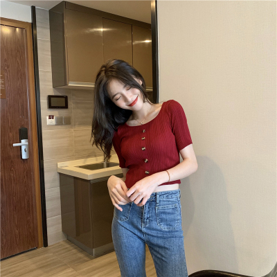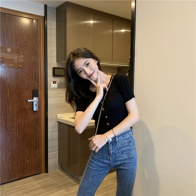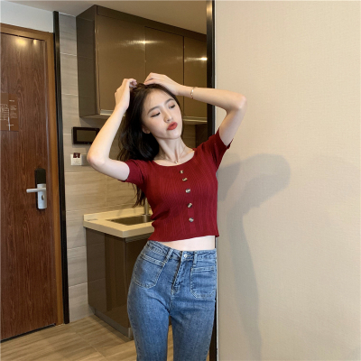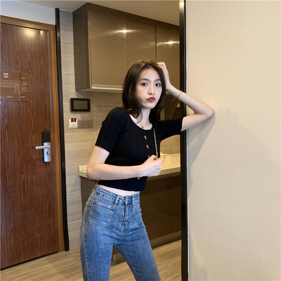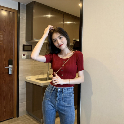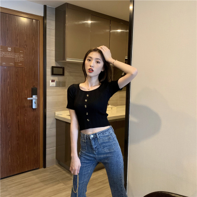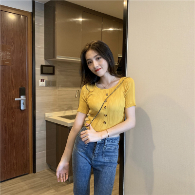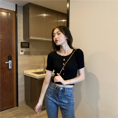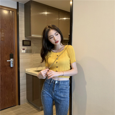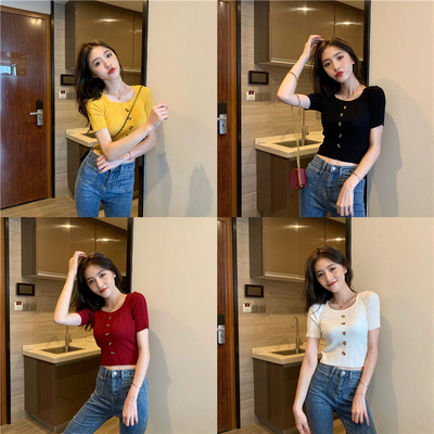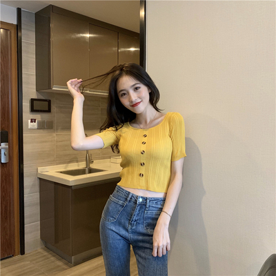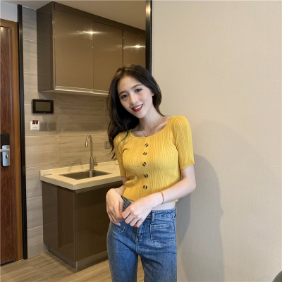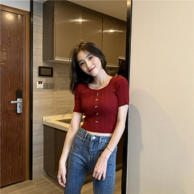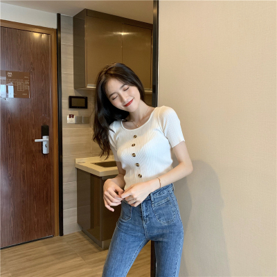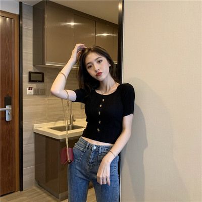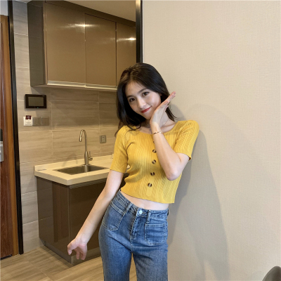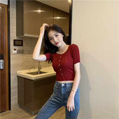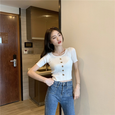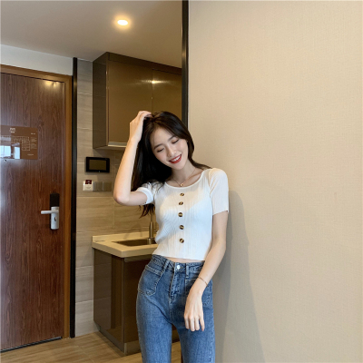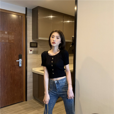 Real-price new Korean fashion slim round collar single-row button thin knitted jacket