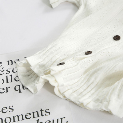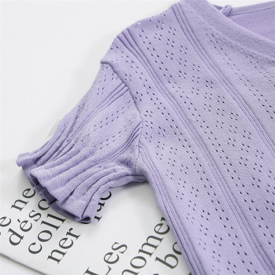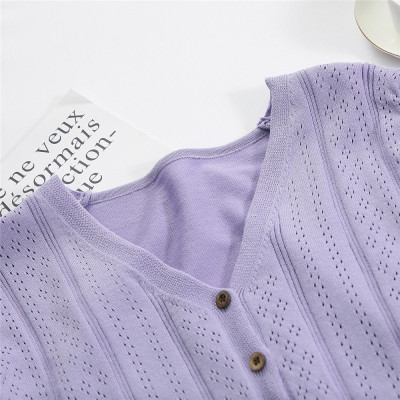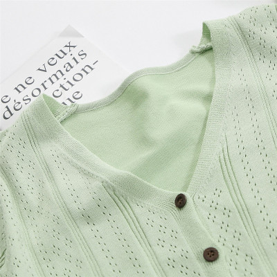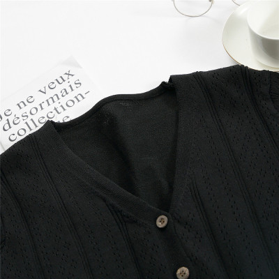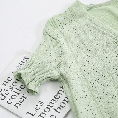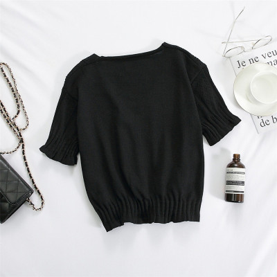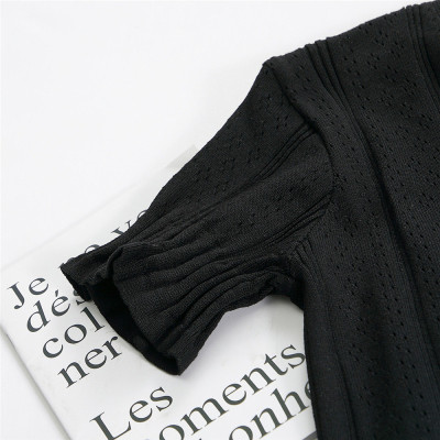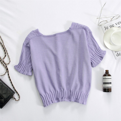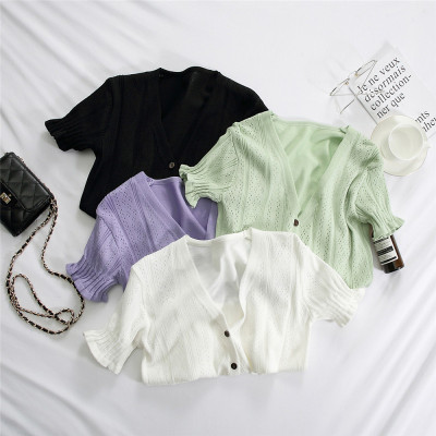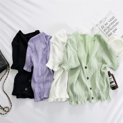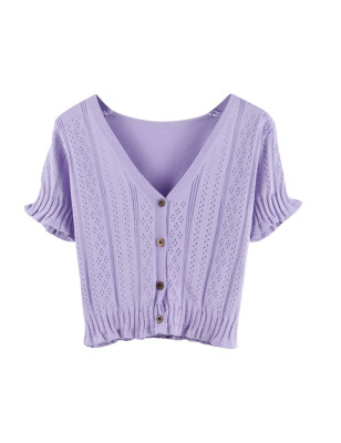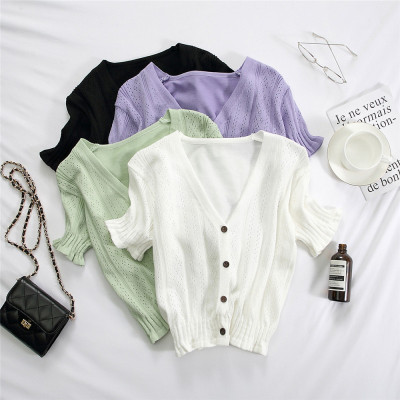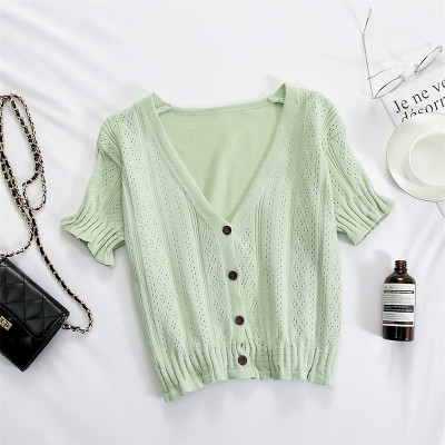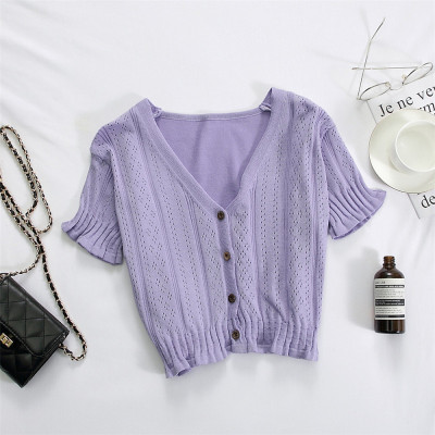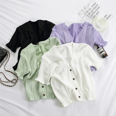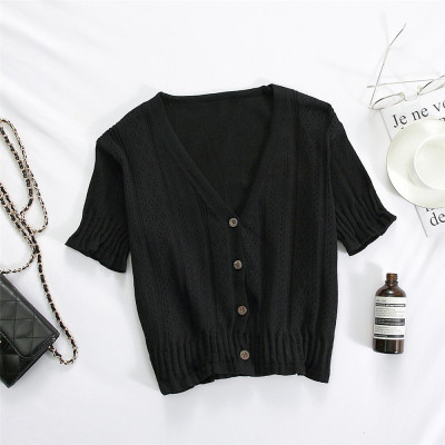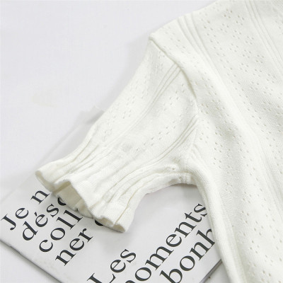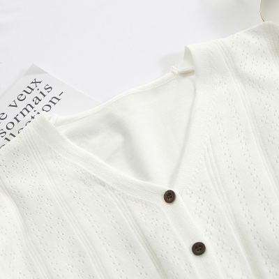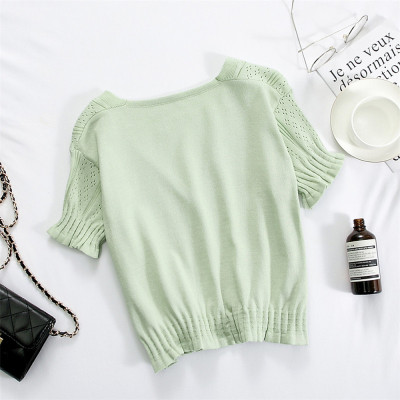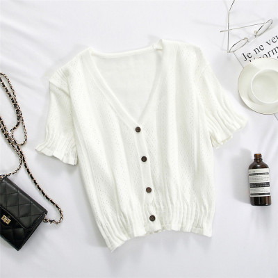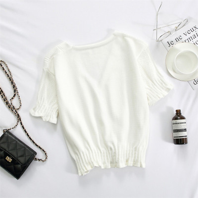 Actual photo @ super fire CEC short sleeve women's short V-neck T-Shirt New Summer White hollow thin top