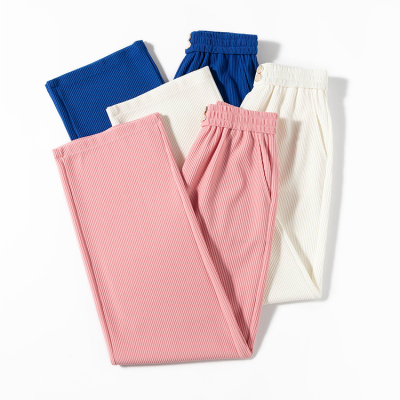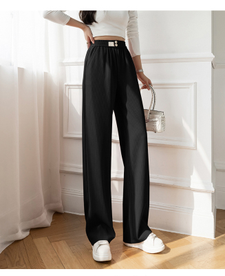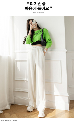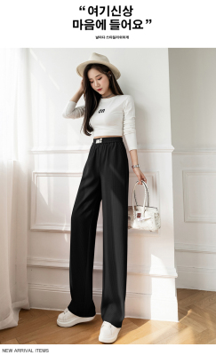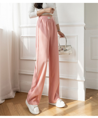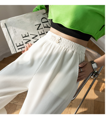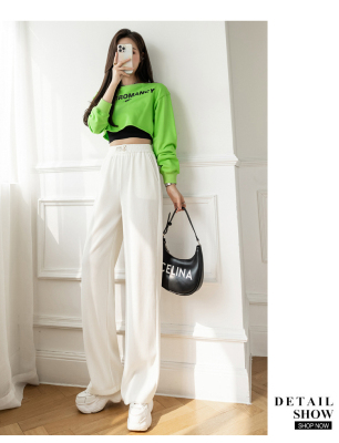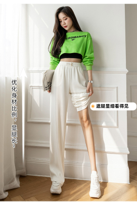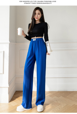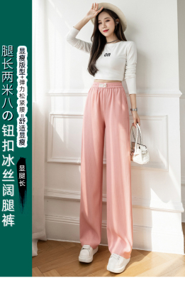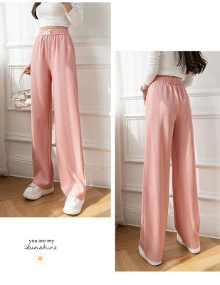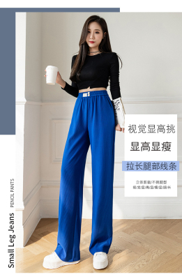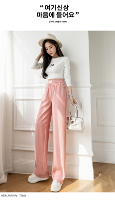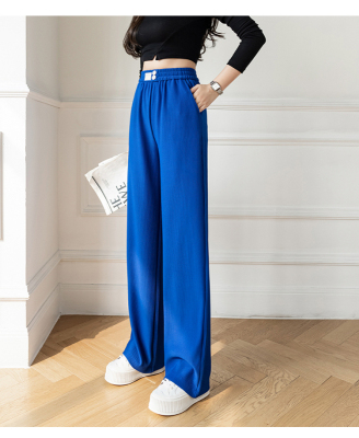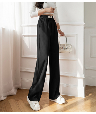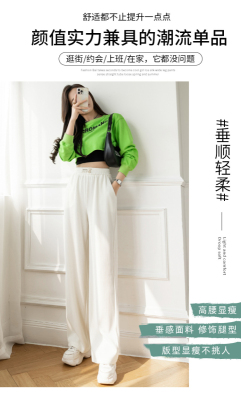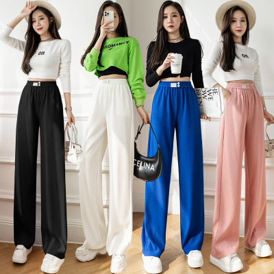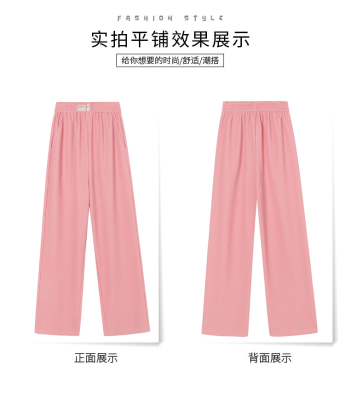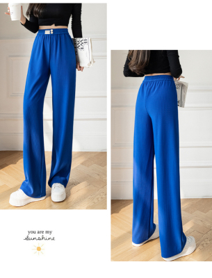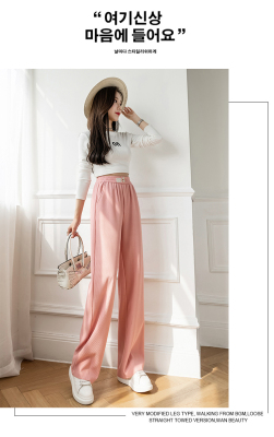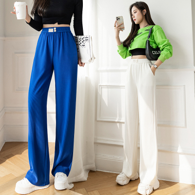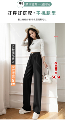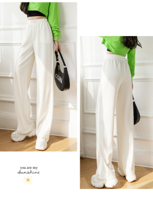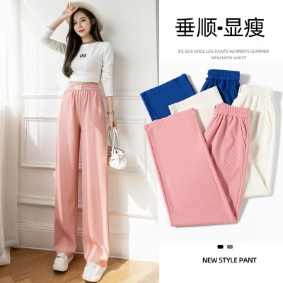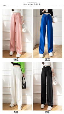 Real shot ice silk wide leg pants women's 2022 spring and summer high waist versatile, slim, loose and casual straight tube floor dragging pants