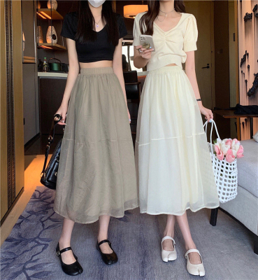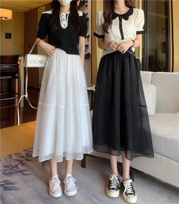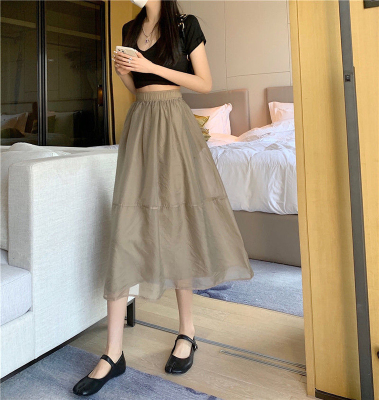 Mesh A-line skirt women's summer Korean version 2022 new high waist slim super xiansen series large skirt