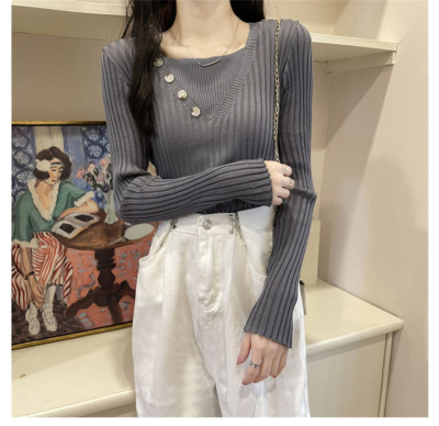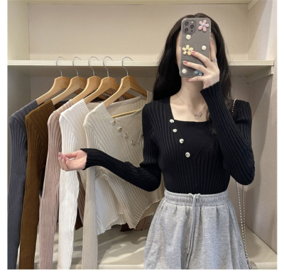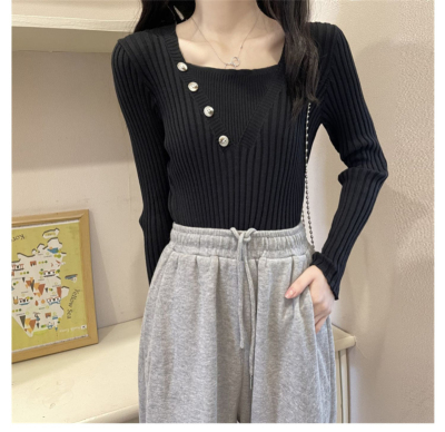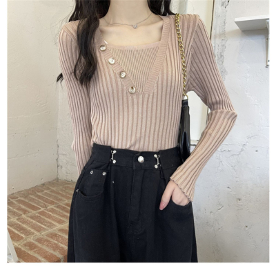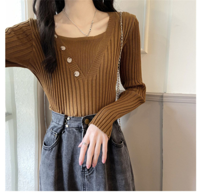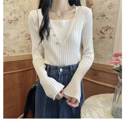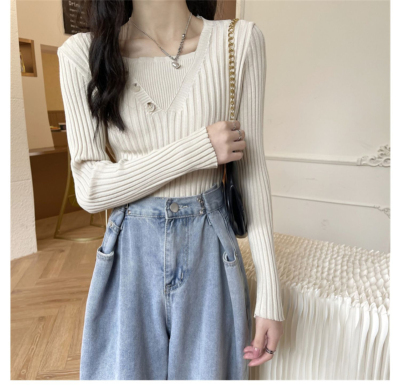 Fake two-piece knitted sweater women's autumn and winter 2022 new style self-cultivation western style all-match gentle wind sweater bottoming shirt top