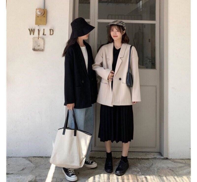 Autumn and winter new Korean style woolen coat women's large size loose casual all-match woolen coat coat