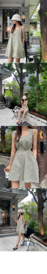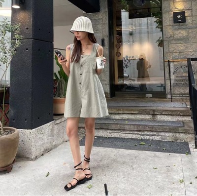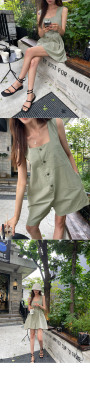 2023 summer new button-up vest style jumpsuit shorts